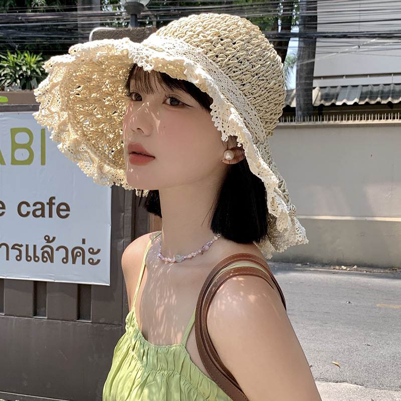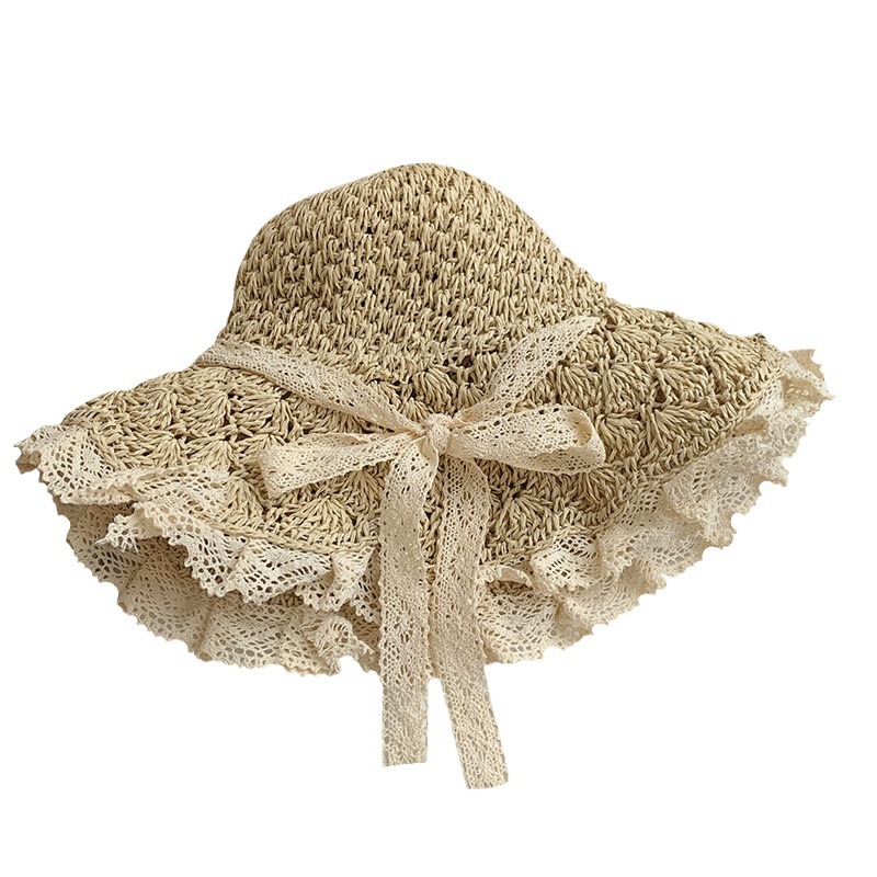 镂空飘带草帽女夏季海边度假草编遮阳防晒帽日系沙滩甜美太阳帽子