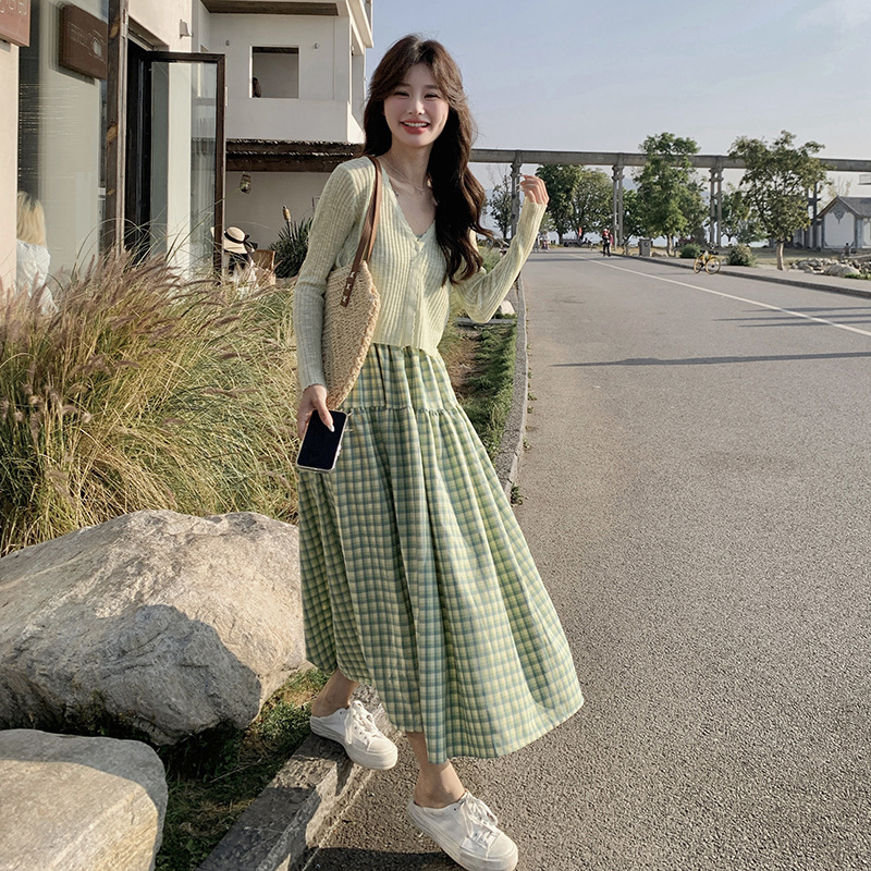 甜美度假风防晒开衫上衣格子吊带裙两件套新款连衣裙夏季套装