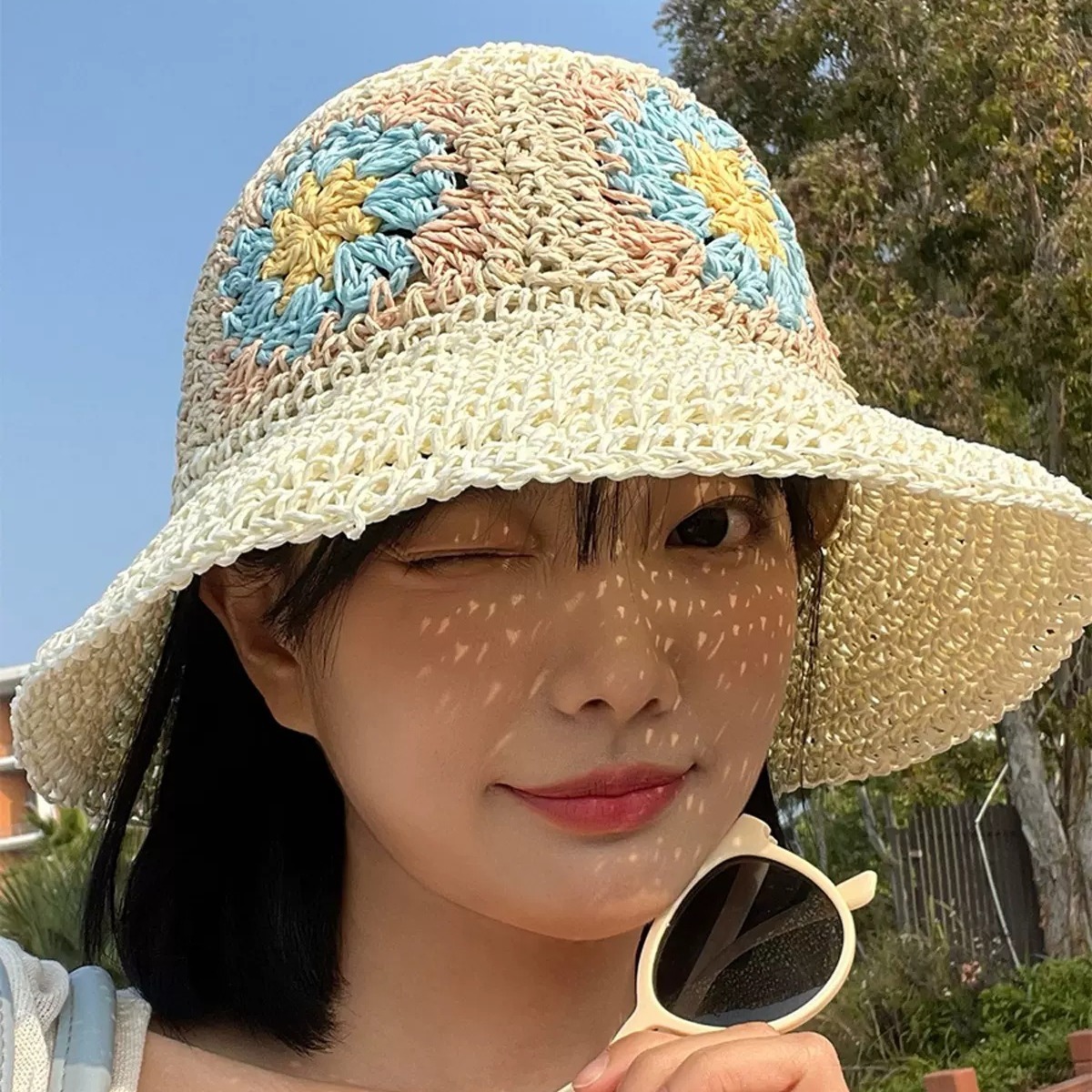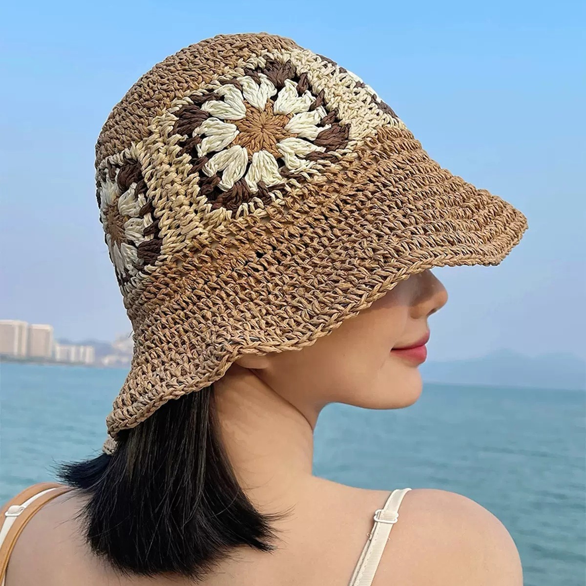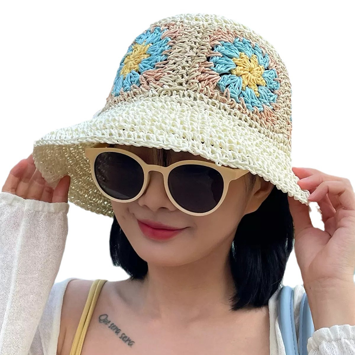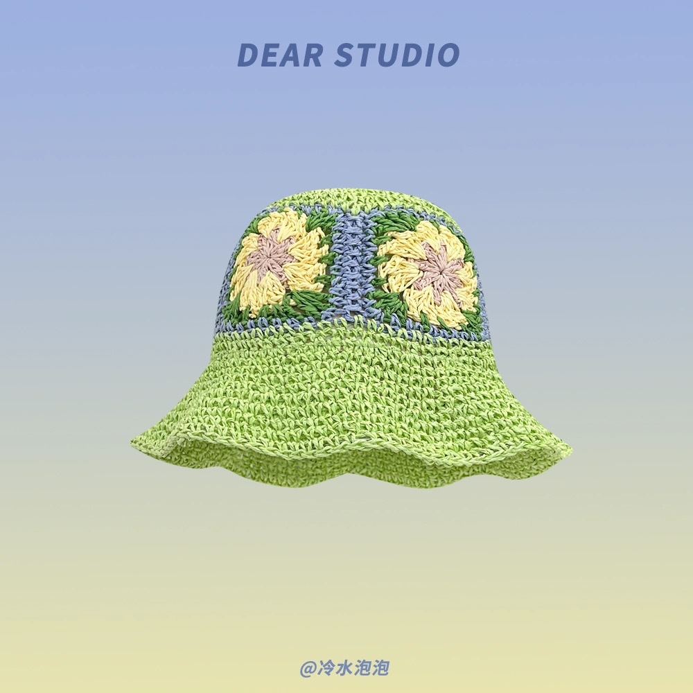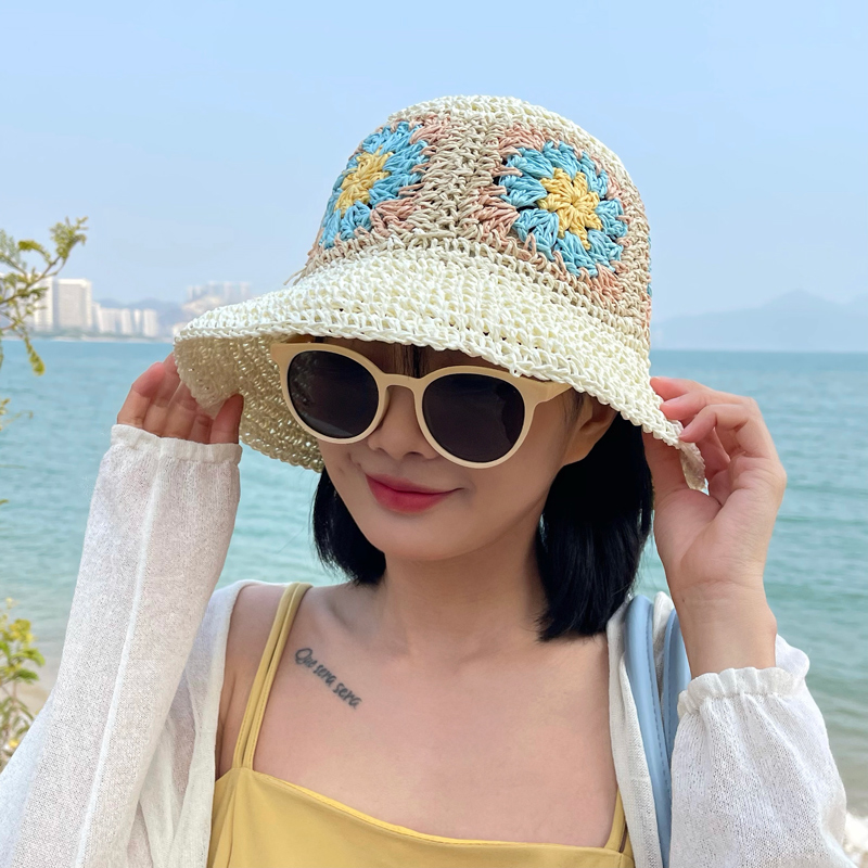 草帽女夏防晒遮阳帽子海边度假沙滩帽草编渔夫帽可折叠太阳帽盆帽