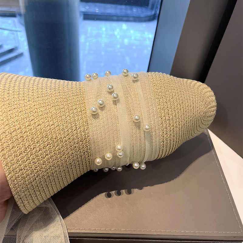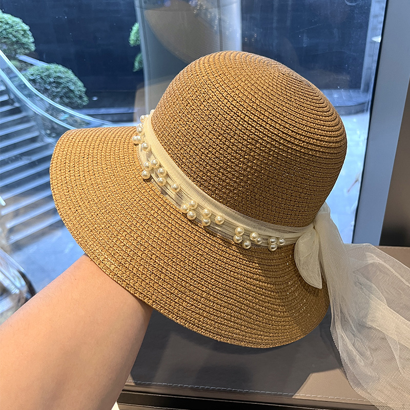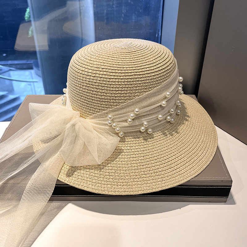 法式优雅复古棒球帽子女夏季珍珠丝带蝴蝶结防草帽紫外线太阳帽潮