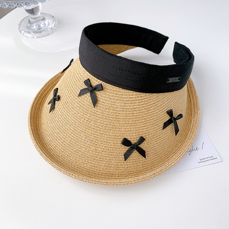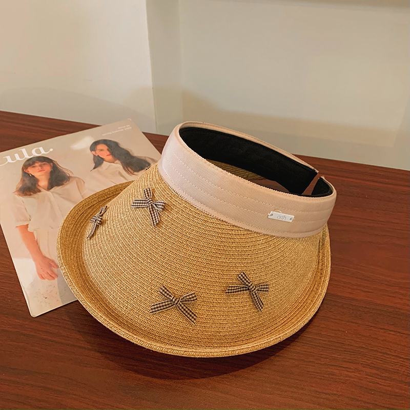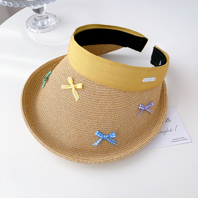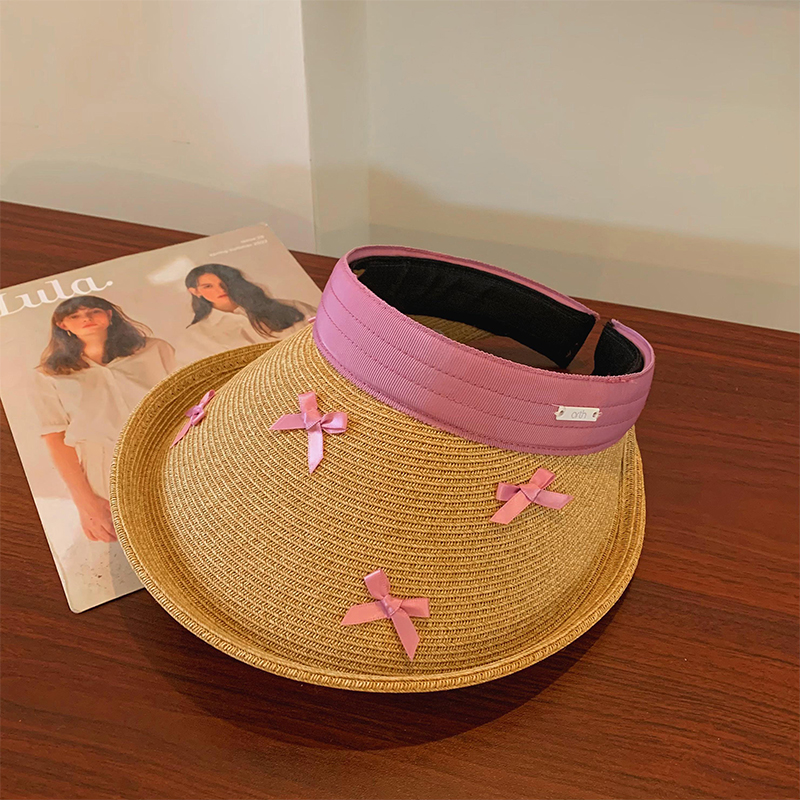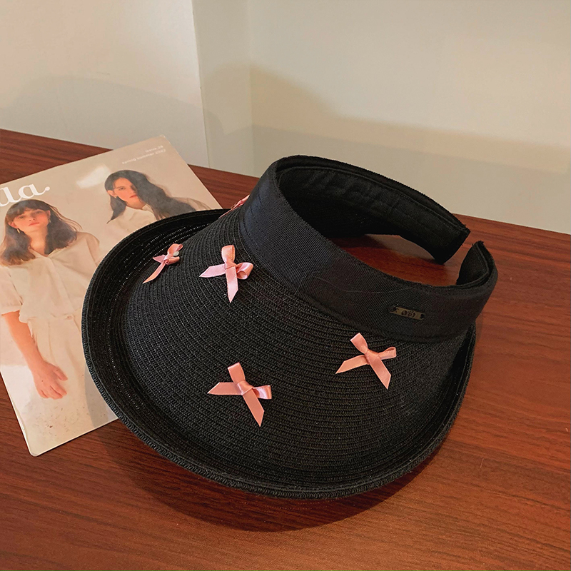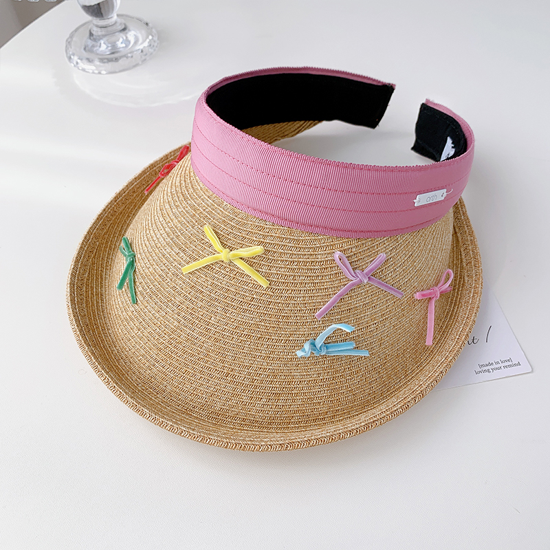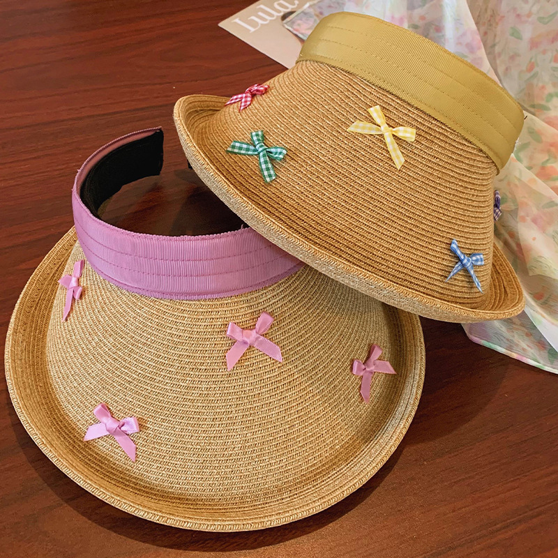 彩色蝴蝶结空顶防晒帽女夏季海边度假编织草帽大帽檐遮阳太阳帽子