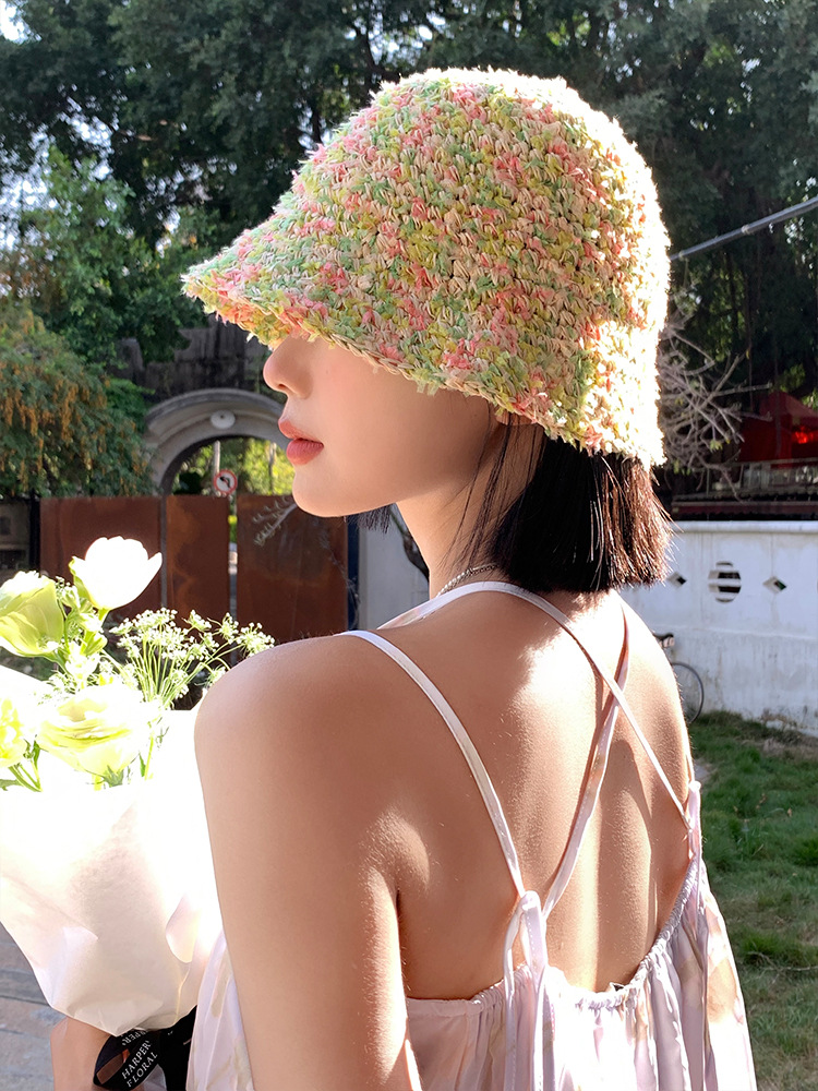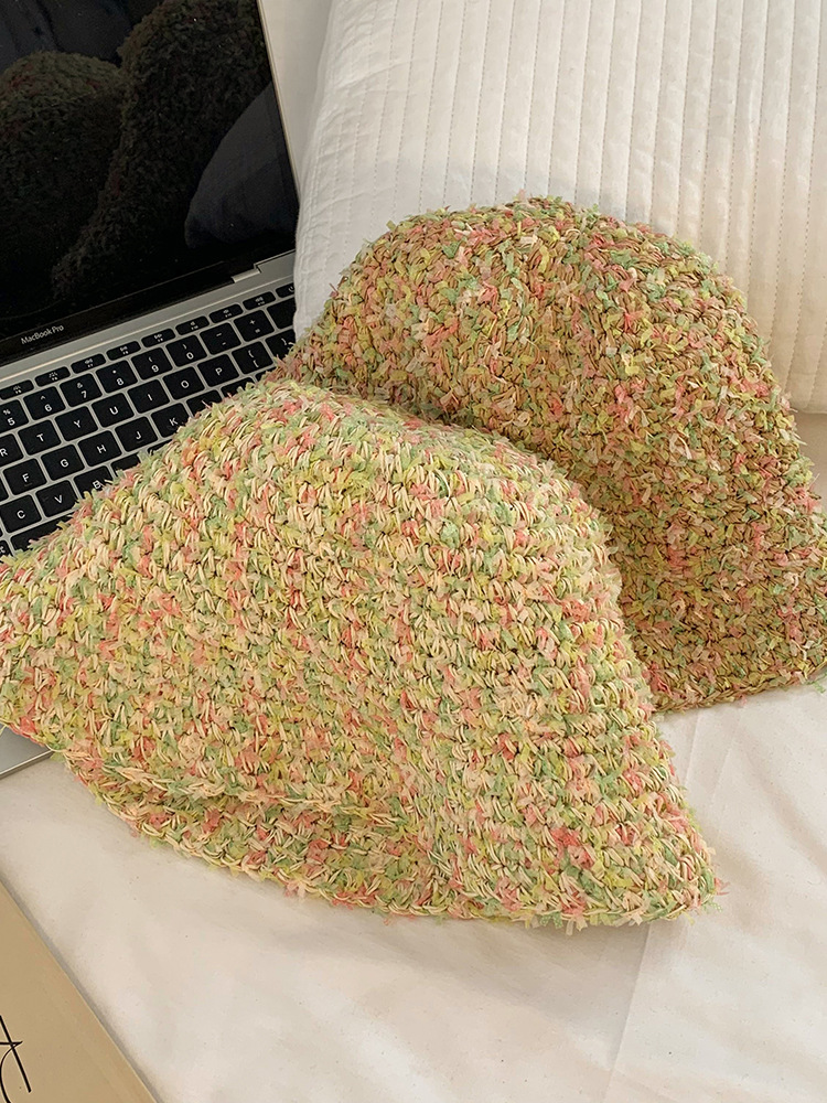 彩色草帽女夏季防紫外线草编遮阳防晒草编渔夫帽海边度假太阳帽子