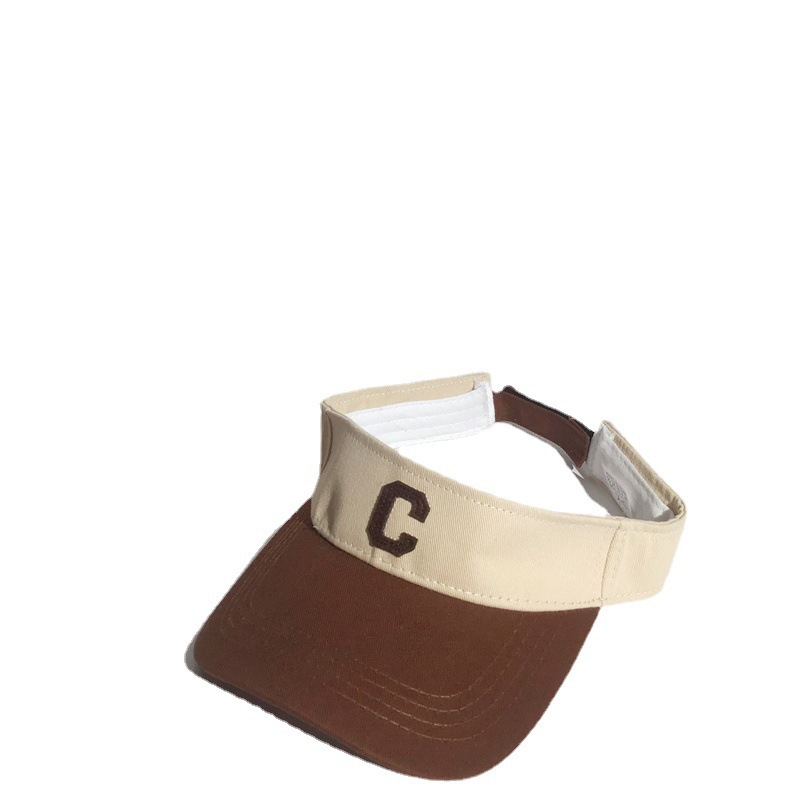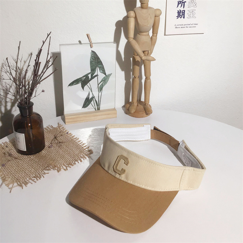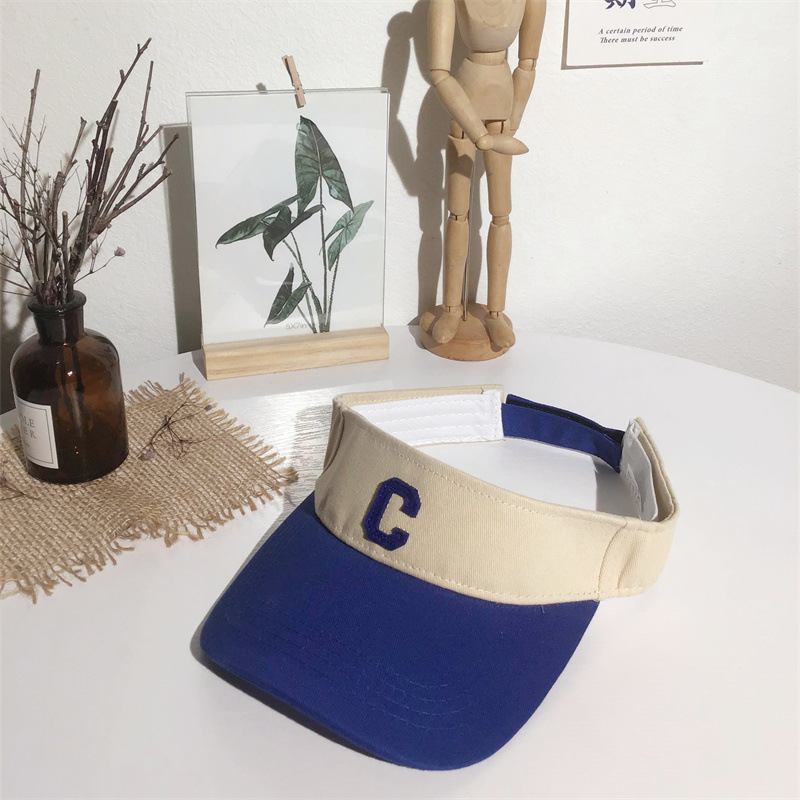 夏季拼色字母C空顶鸭舌帽女透气无顶遮脸情侣棒球帽子防晒遮阳帽