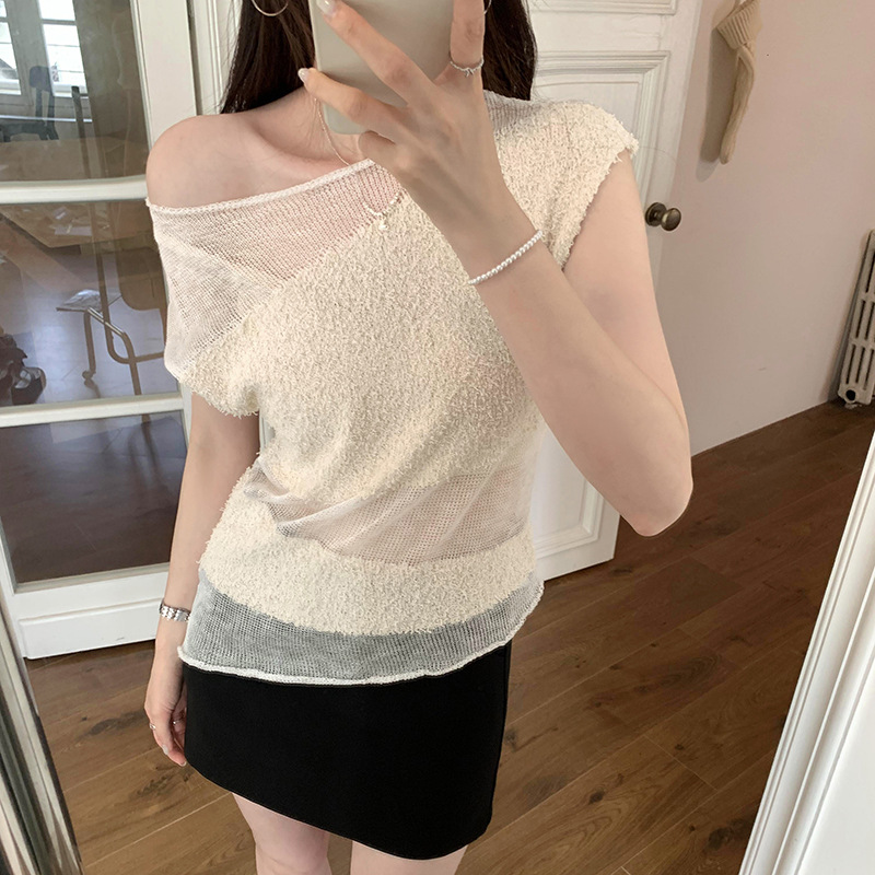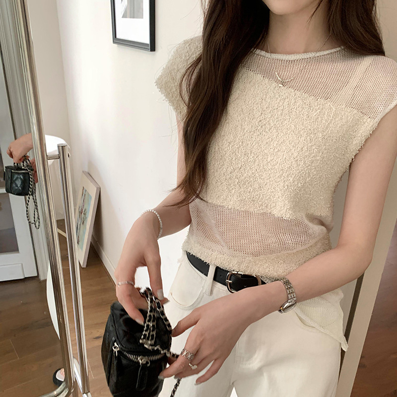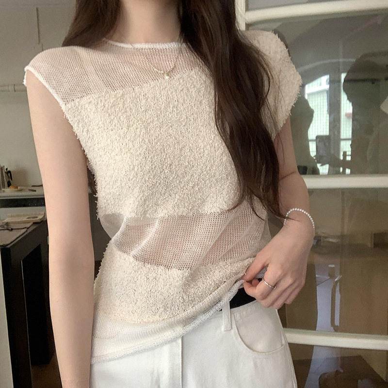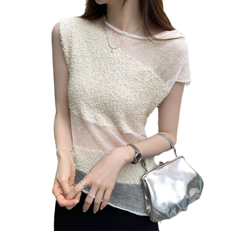 不对称设计感镂空拼接无袖针织衫女夏季新款法式辣妹薄款上衣