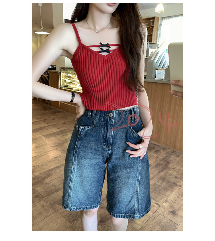 小清新甜辣多巴胺法式小吊带女夏外穿绝美蝴蝶结修身独特精致上衣
