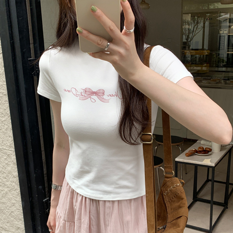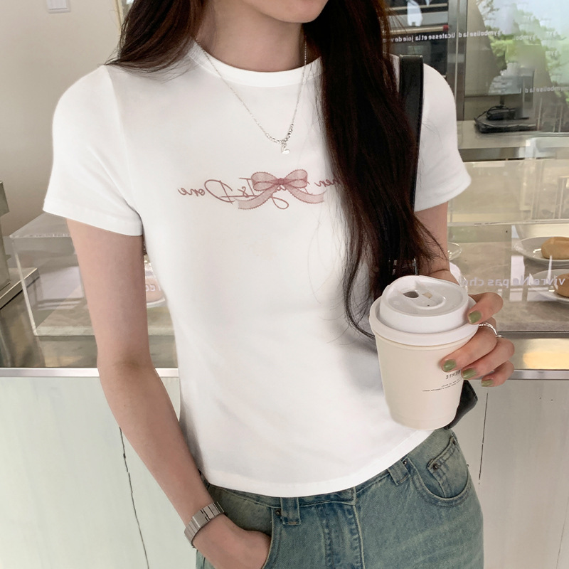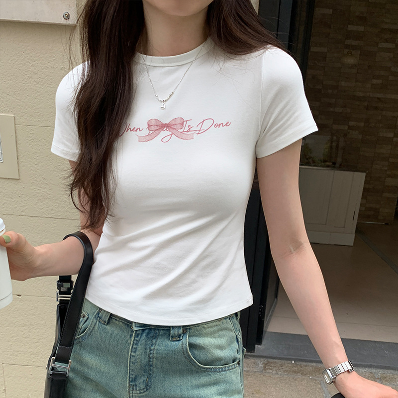 辣妹圆领白色正肩短袖t恤女夏季新款甜辣小个子短款百搭上衣
