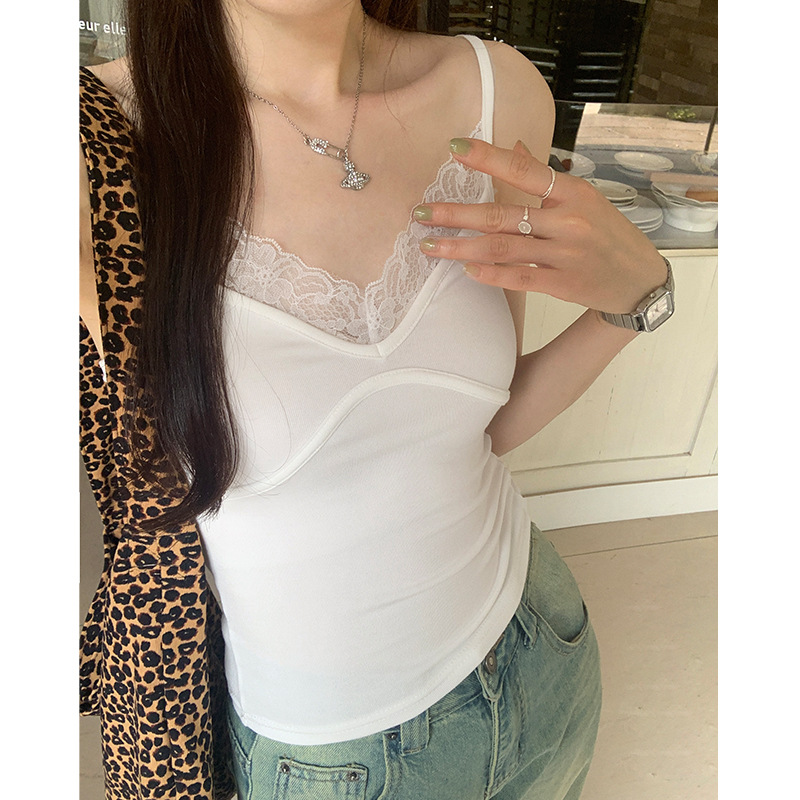 性感辣妹白色蕾丝边吊带背心女春夏季新款设计感修身内搭短款上衣