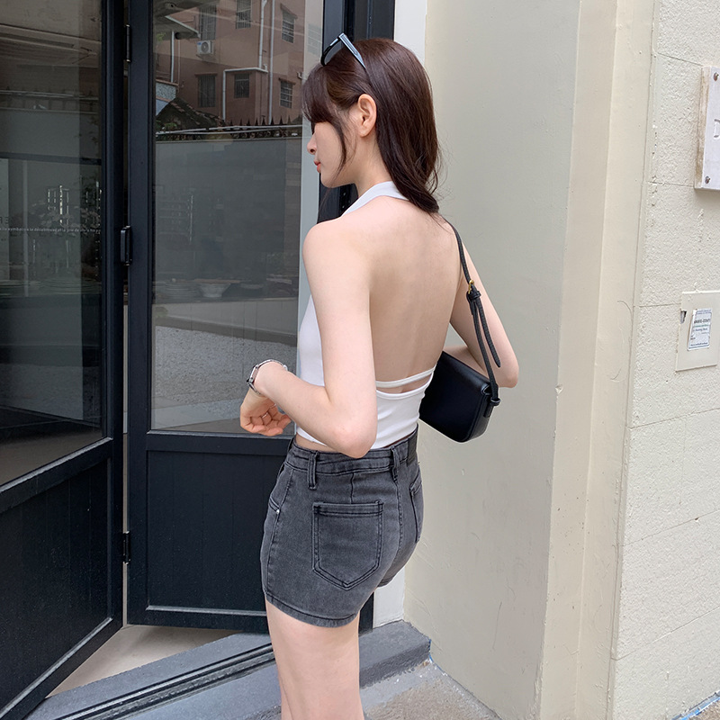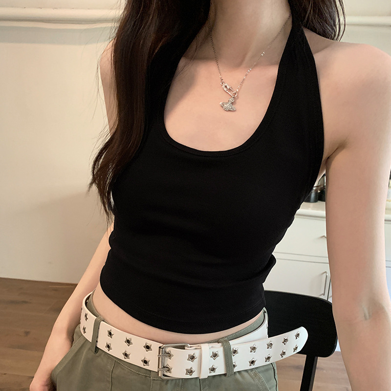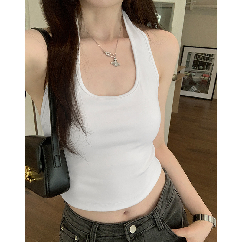 性感挂脖吊带背心女夏季新款韩版简约修身辣妹外穿短款打底衫上衣
