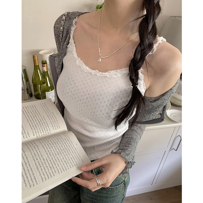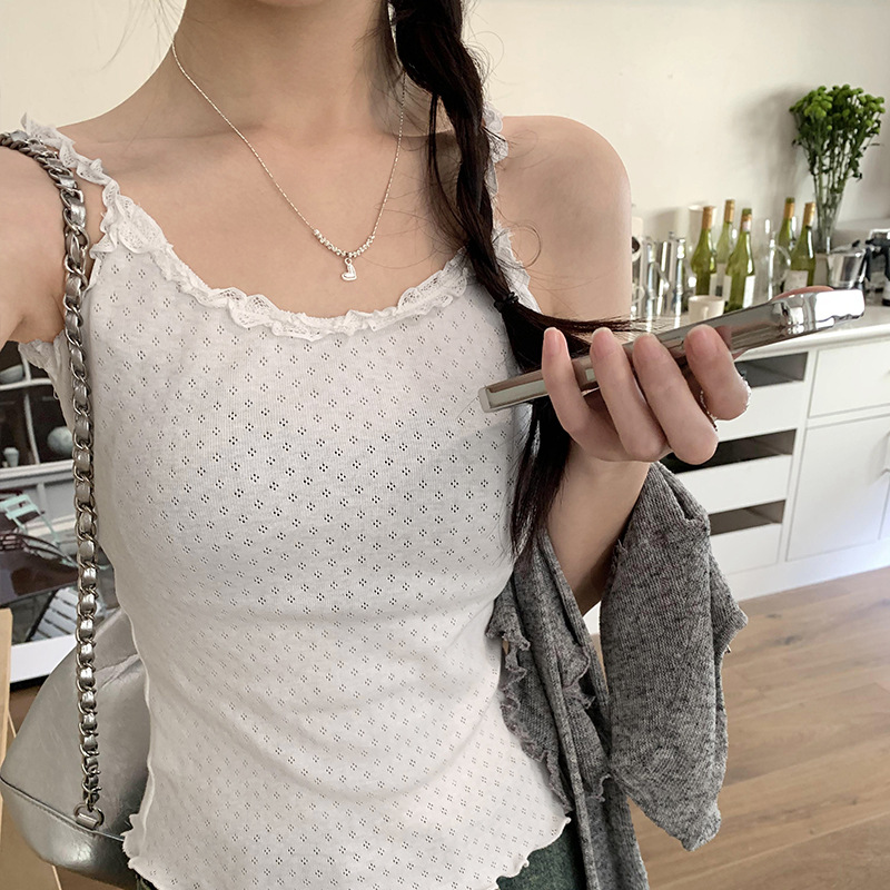 甜酷性感蕾丝边吊带背心女夏季新款修身显瘦短款白色无袖上衣