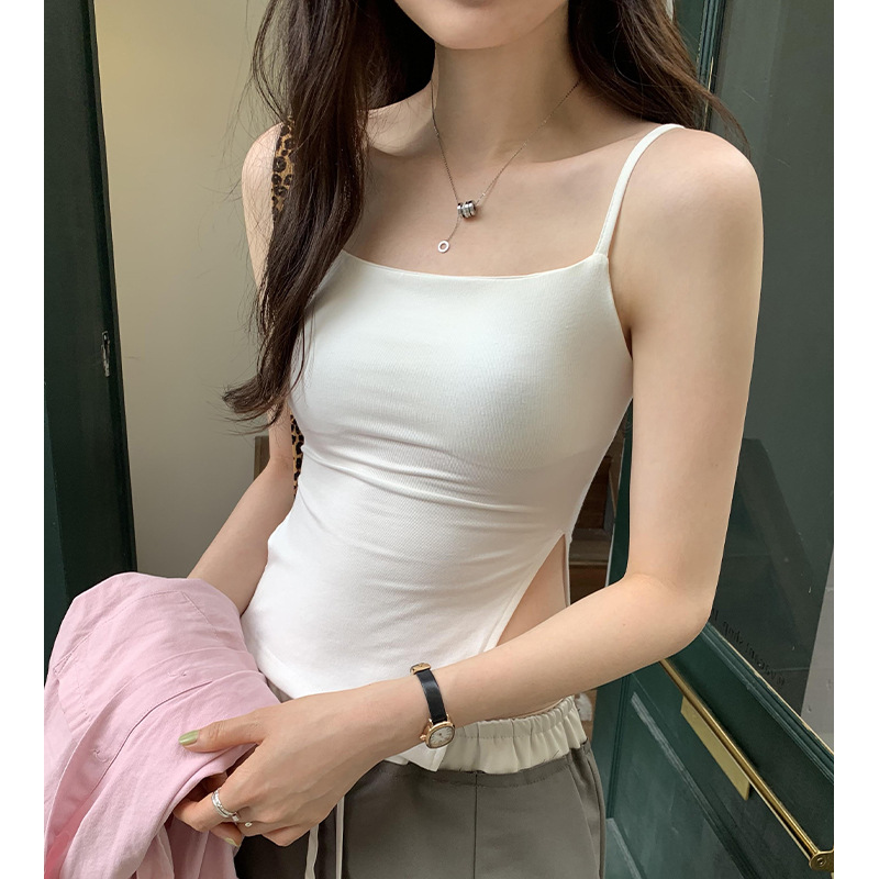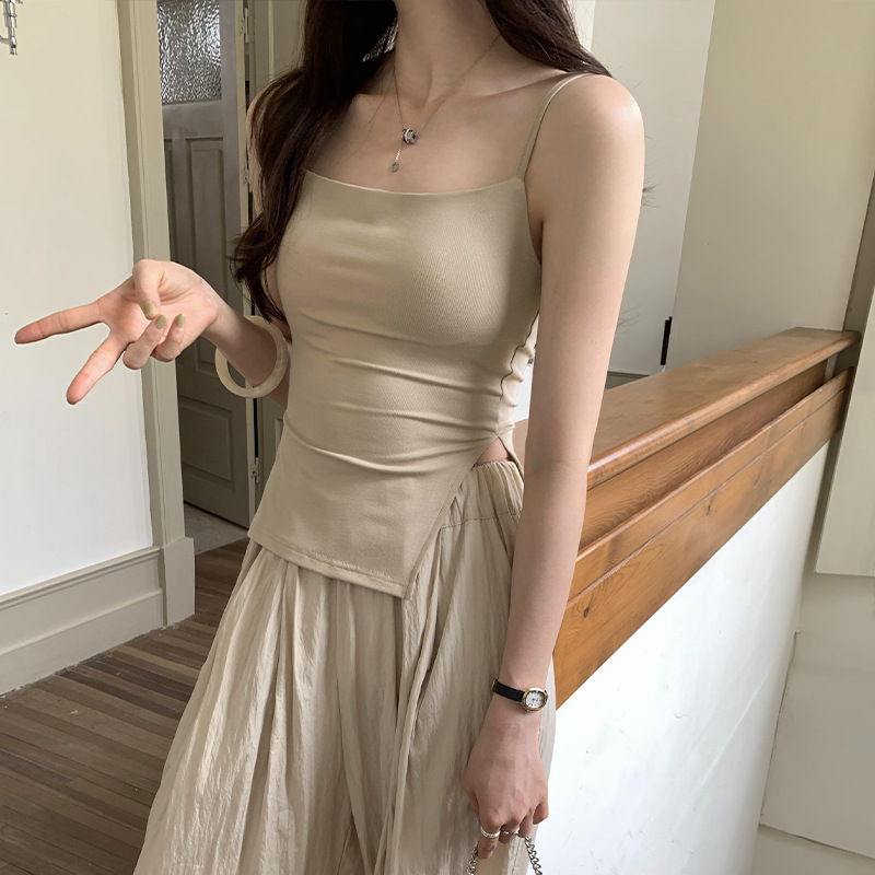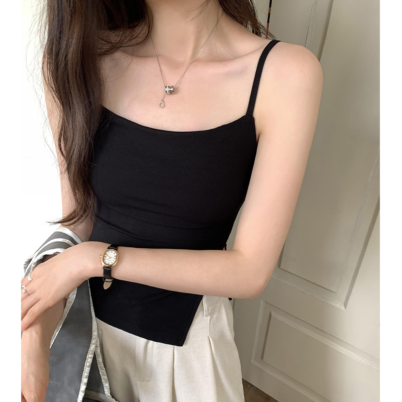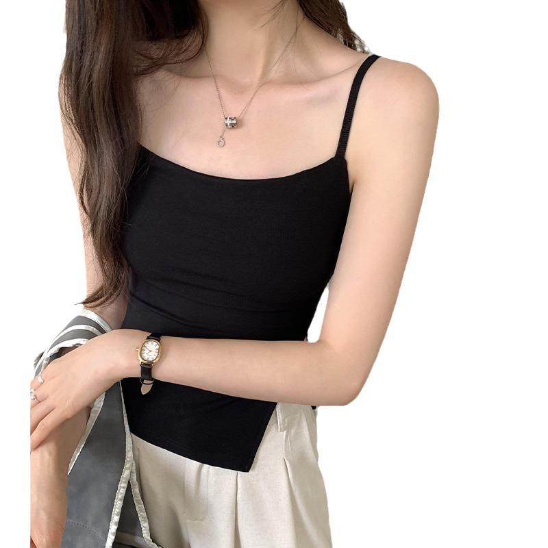 设计感辣妹带胸垫吊带背心女夏季新款开叉修身显瘦内搭上衣