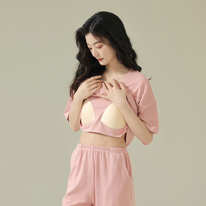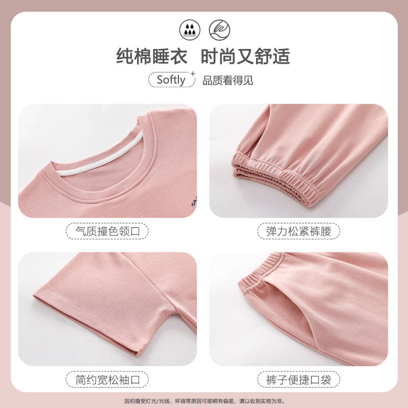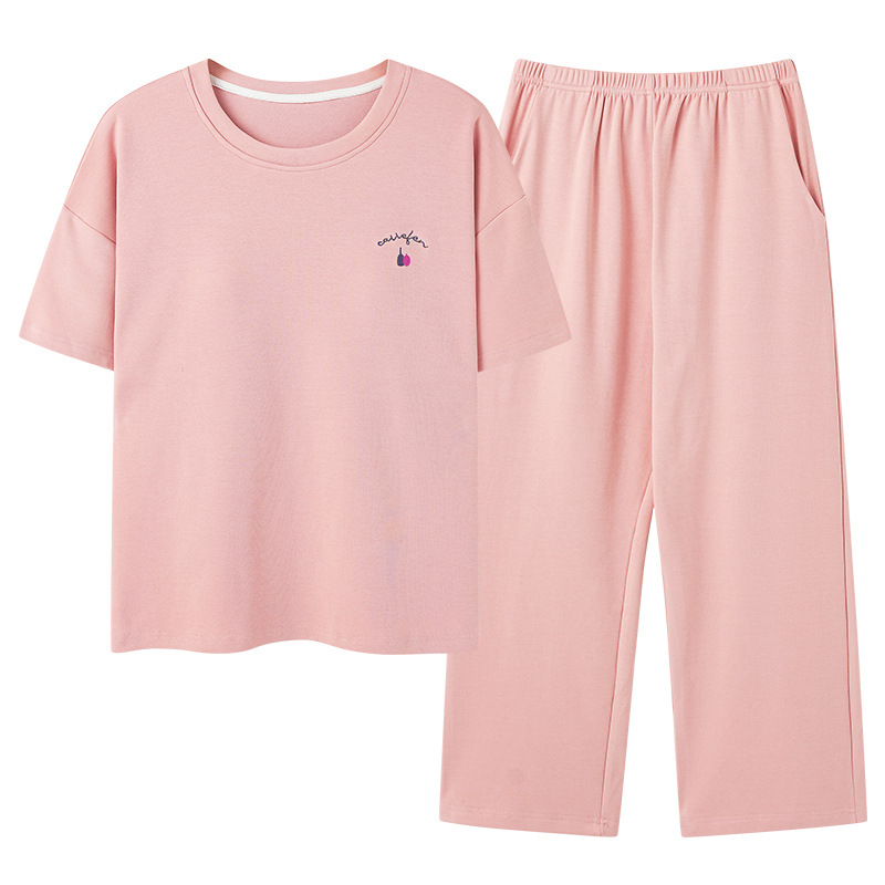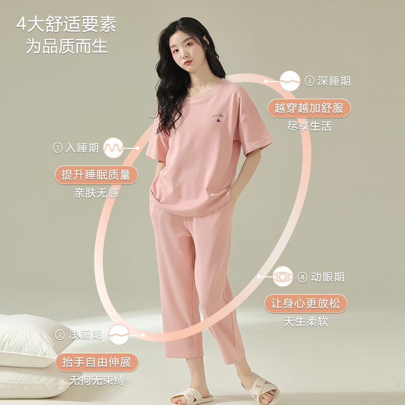 年新款带胸垫睡衣女夏季纯棉短袖七分裤甜美休闲可外穿家居服