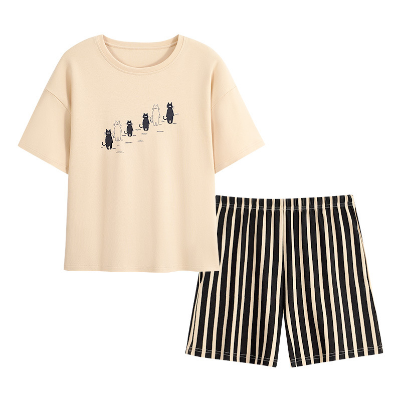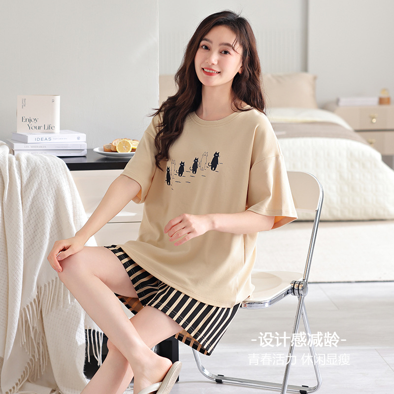 纯棉睡衣女夏季短袖短裤休闲可外穿简约女士圆领家居服年新款