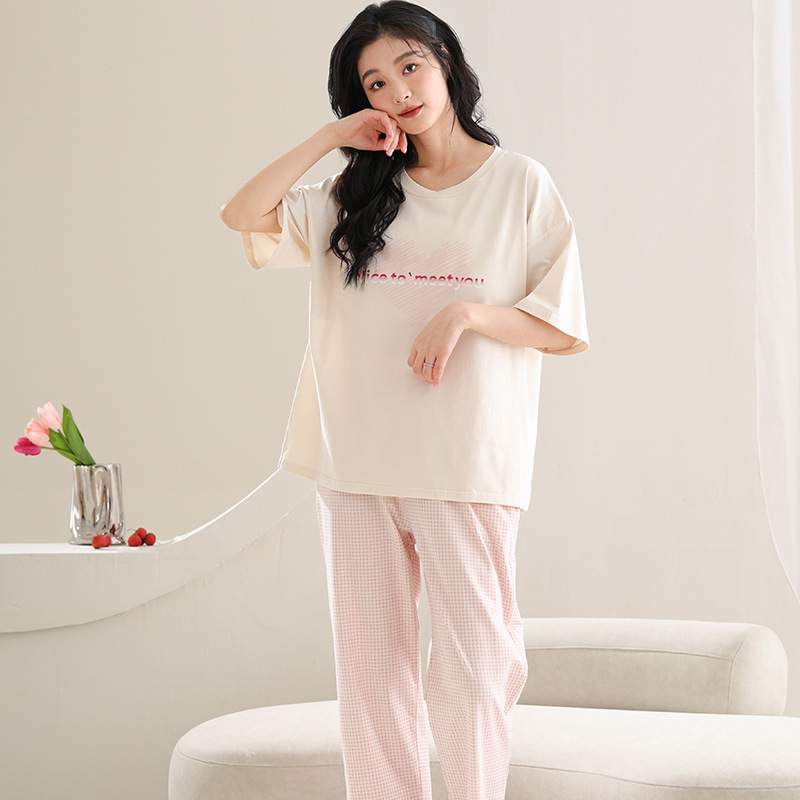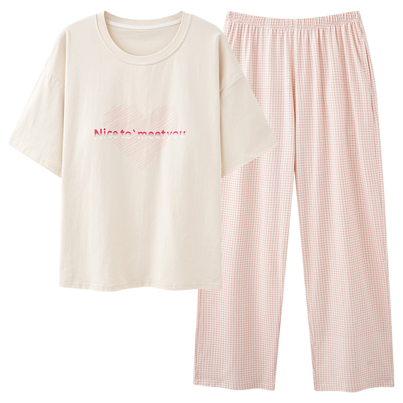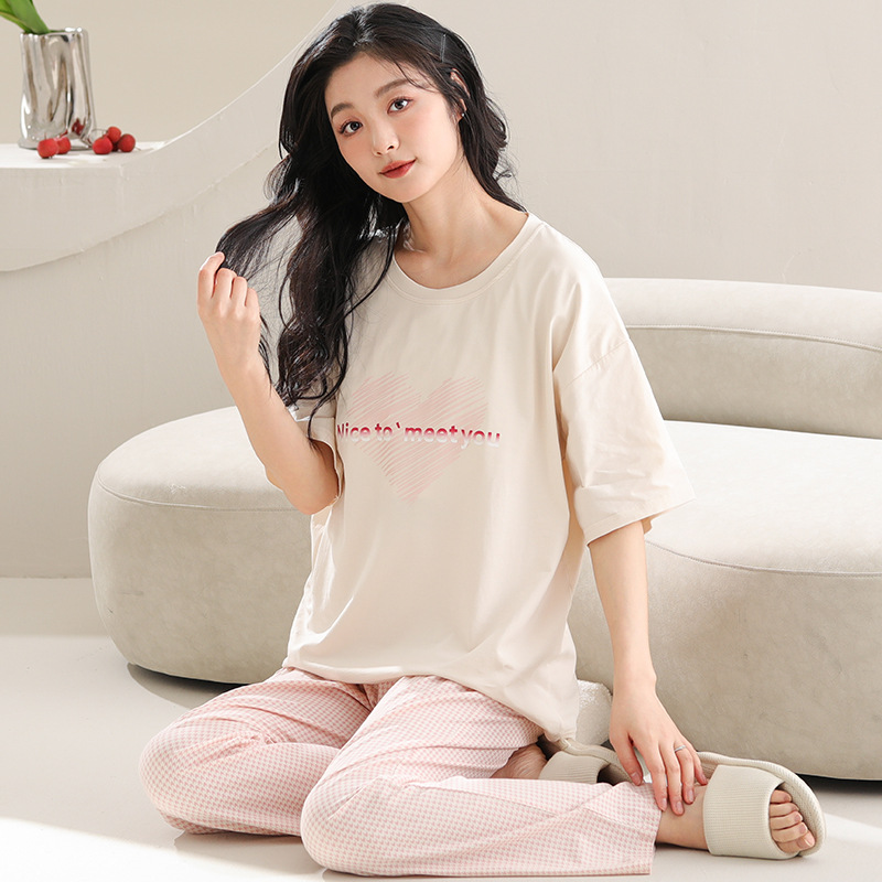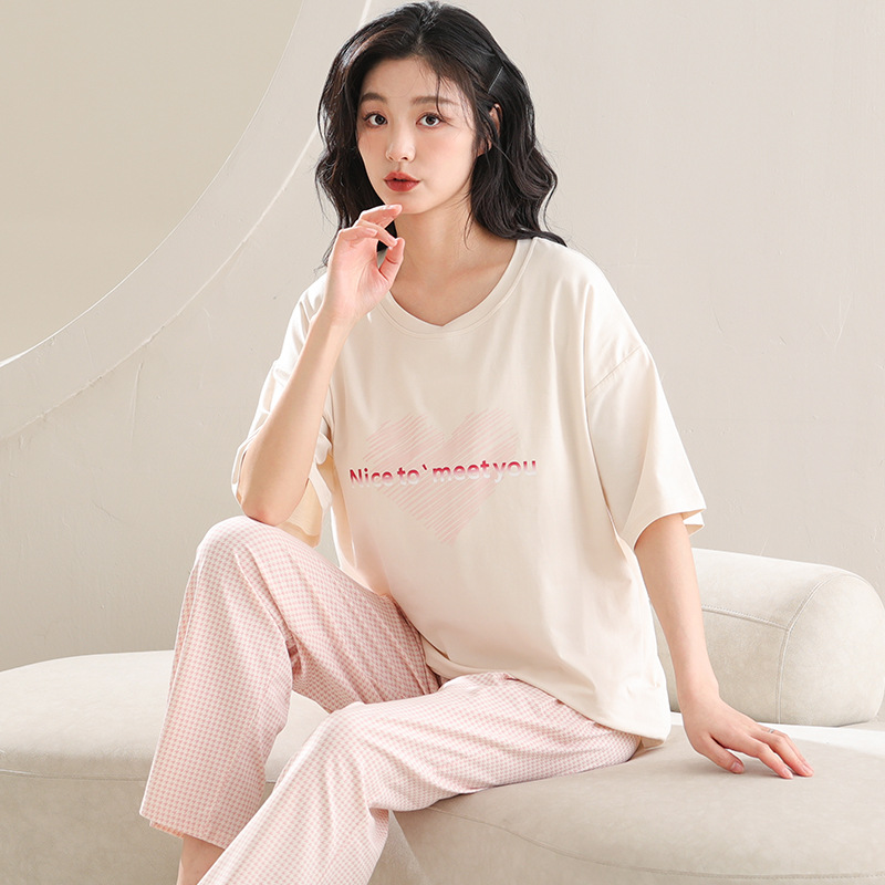 莫代尔睡衣女士夏季短袖长裤年新款休闲带胸垫一体家居服夏天