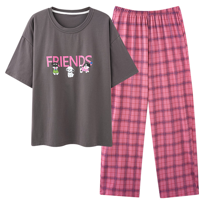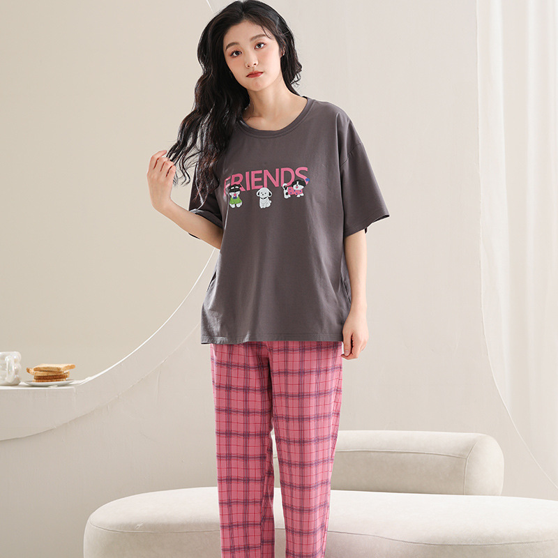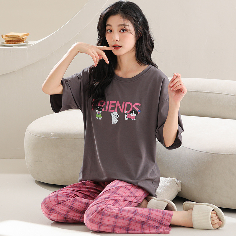 带胸垫一体睡衣女士夏季莫代尔卡通短袖长裤年新款外穿家居服
