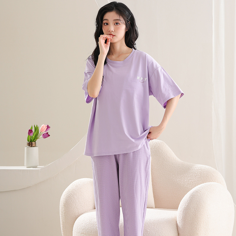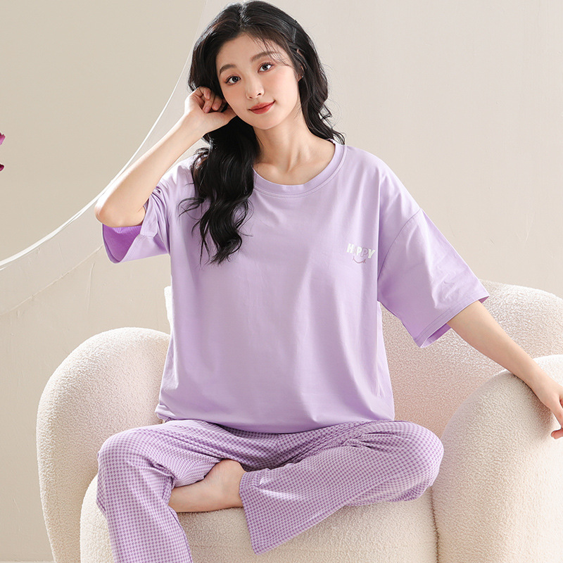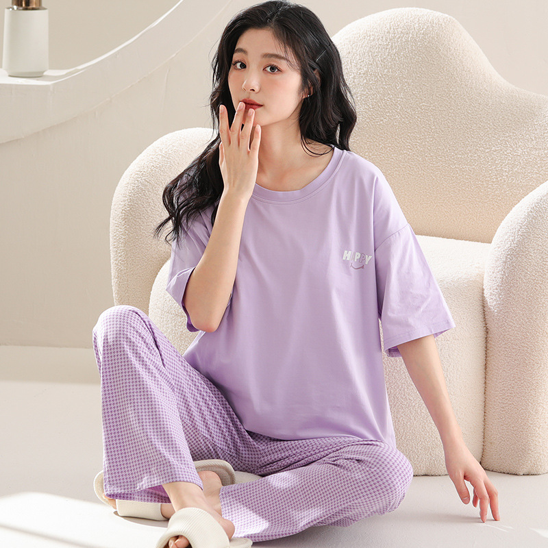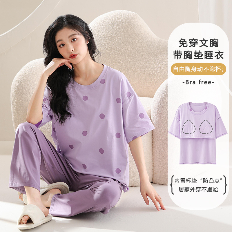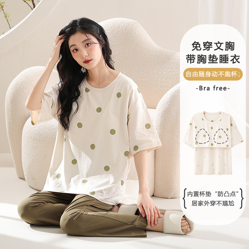 莫代尔睡衣女士夏季短袖长裤年新款套头带胸垫一体家居服套装