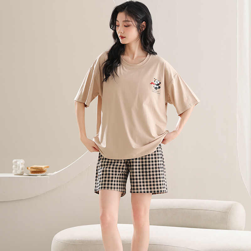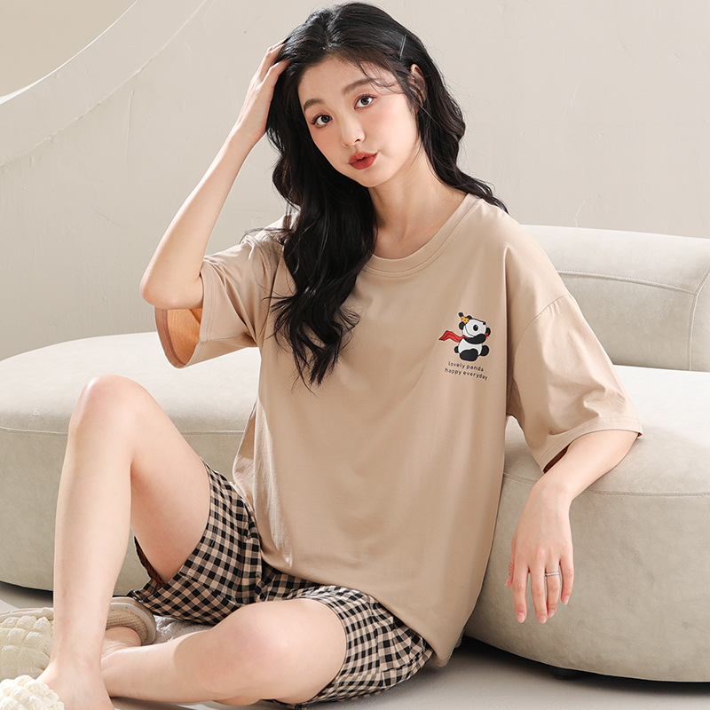 莫代尔睡衣女夏季短袖年新款女士夏天休闲带胸垫可外穿家居服