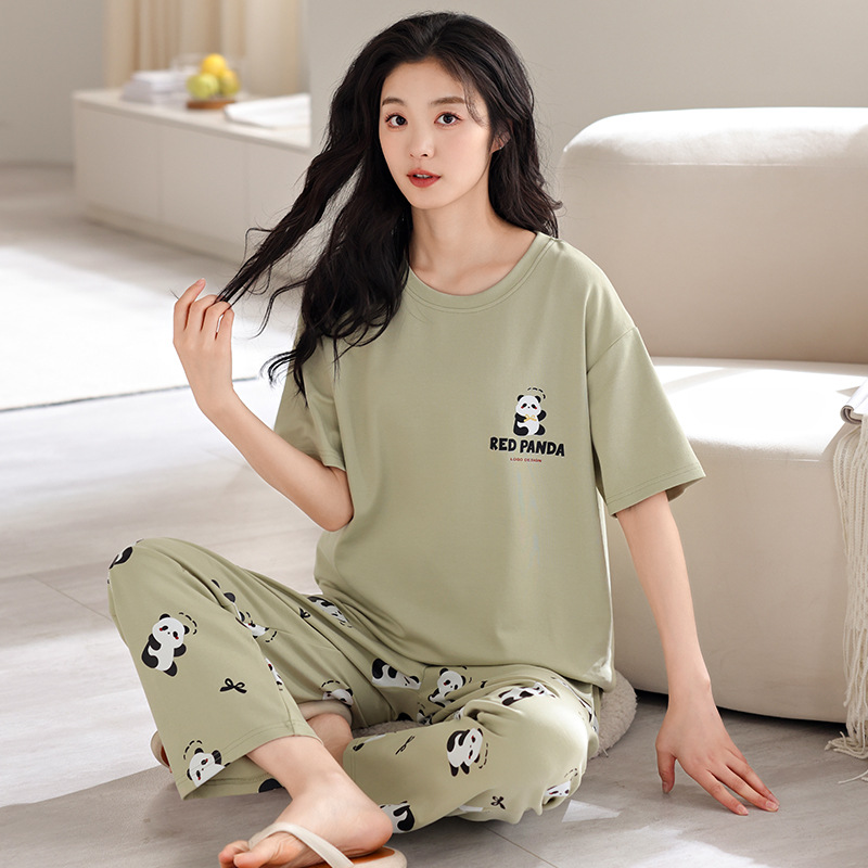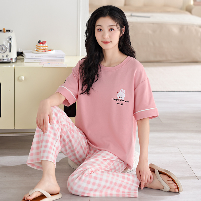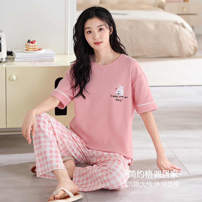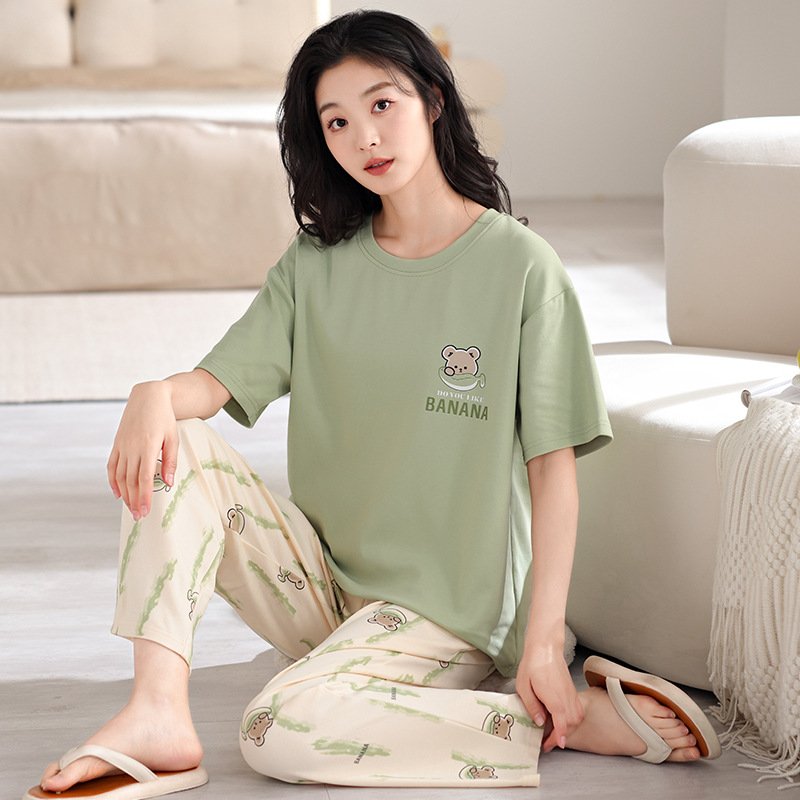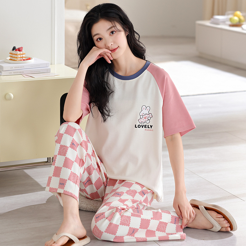 纯棉睡衣女夏季短袖长裤年新款全棉少女士卡通学生家居服套装