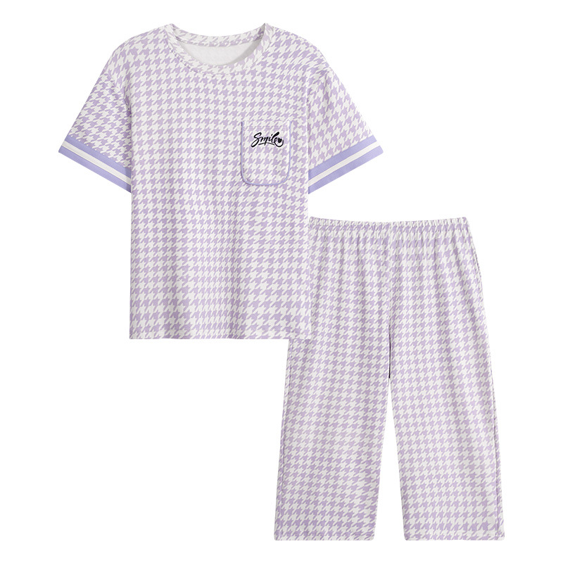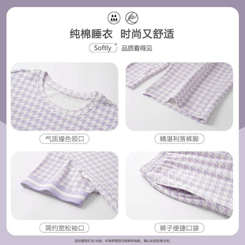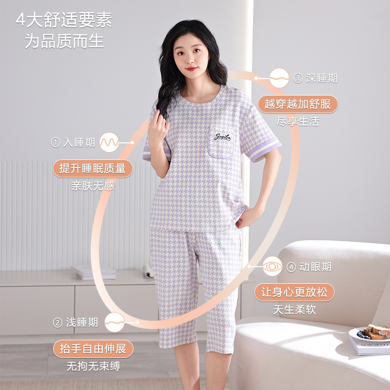睡衣女款夏季纯棉短袖七分裤100%全棉薄款加大码可外穿家居服套装