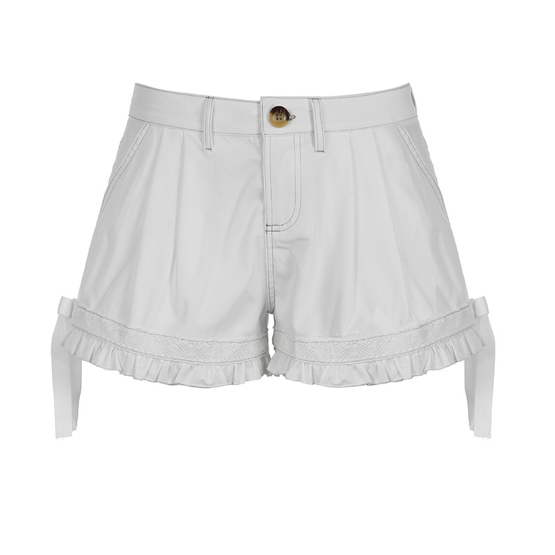 夏季新款蝴蝶结花边短裤女百搭白色宽松阔腿裤工装休闲热裤