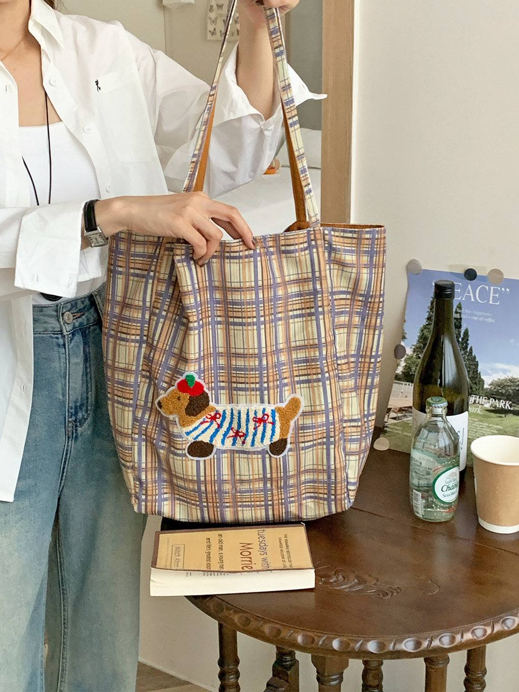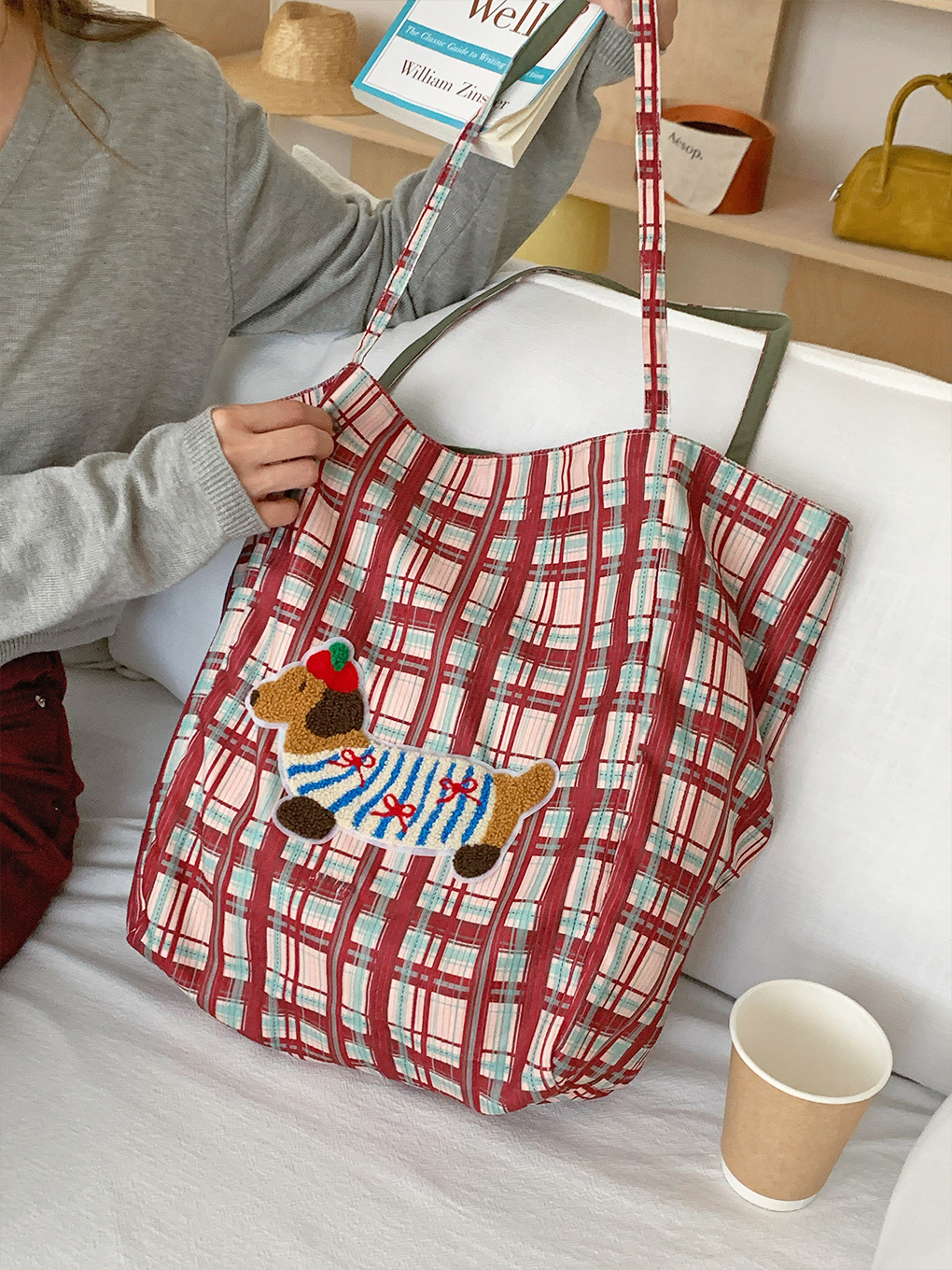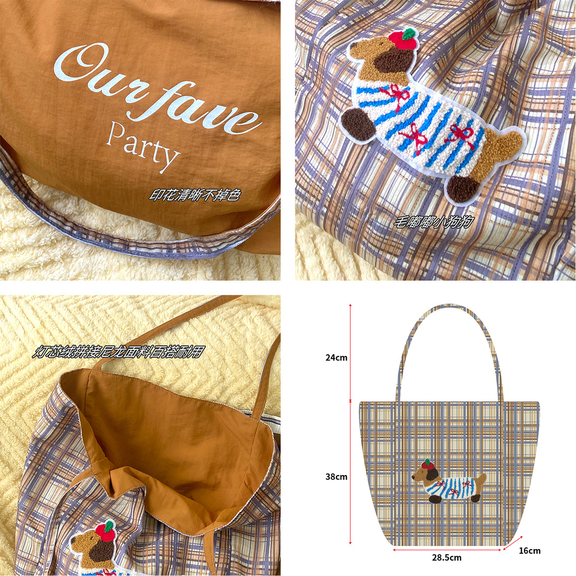 小狗格纹托特包安可拉新款大容量腋下单肩包休闲百搭双面帆布包女