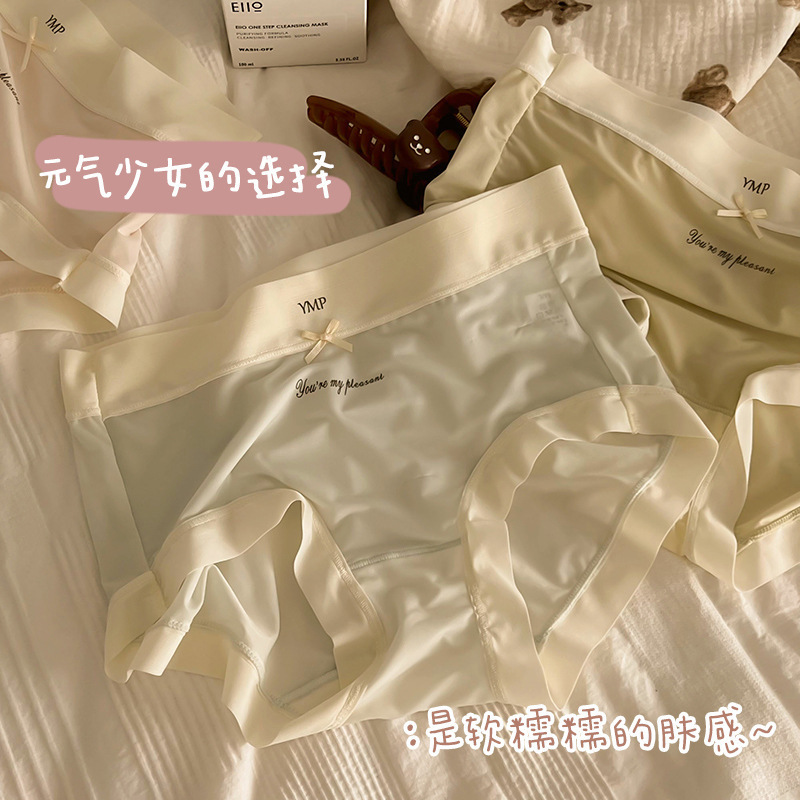 冰丝无痕内裤女款舒适透气女生纯棉抗菌裆轻奢缎面蝴蝶结女士短裤