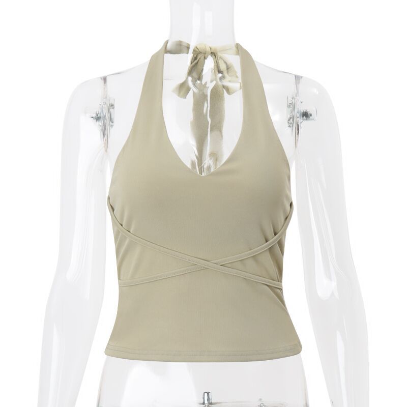ins欧美风夏季新款性感U领交叉绑绳短款修身外穿挂脖小背心女