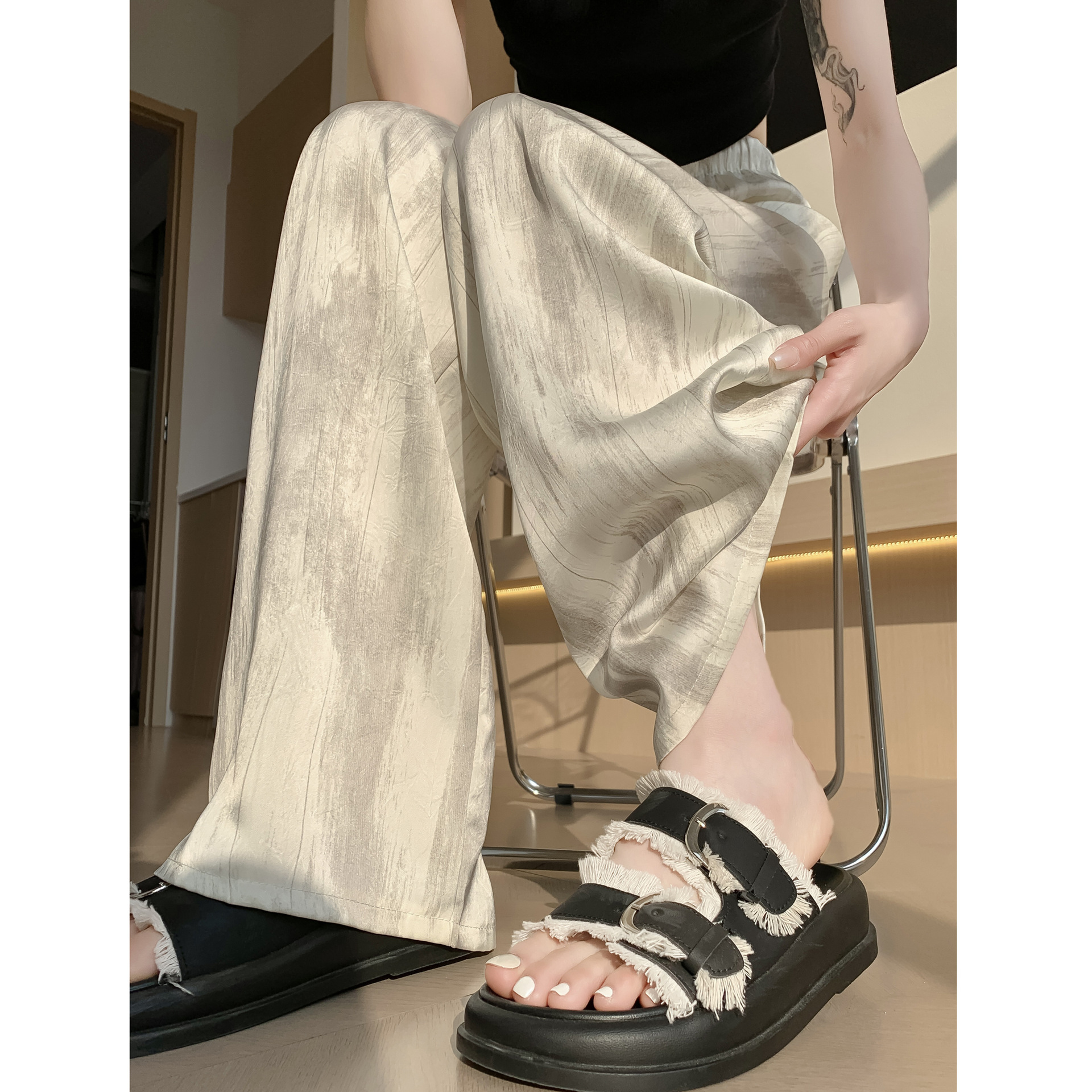 肌理感醋酸缎面裤子女夏季薄款阔腿裤高腰宽松垂感休闲防晒凉凉裤