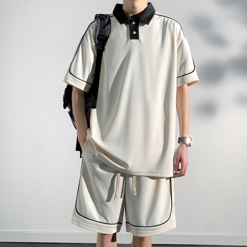 优质夏季薄款POLO短袖套装男士潮流搭配帅气休闲短袖两件套家居服