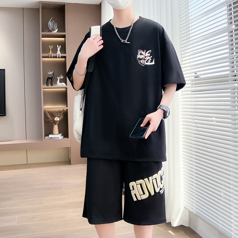 夏季新款青少年短袖T恤套装港风潮牌美式内搭气质简约