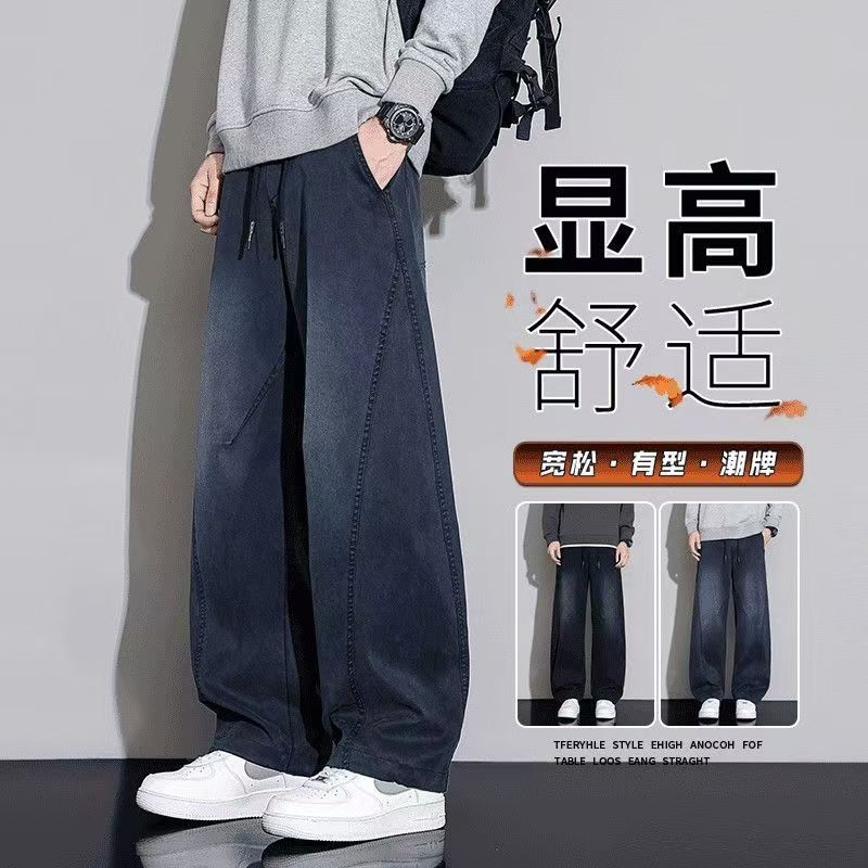 黑色弯刀牛仔裤男宽松直筒2025秋冬新款加绒美式潮牌水洗休闲长裤