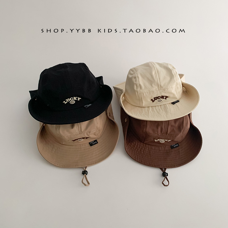 儿童帽子春秋薄款遮阳防晒帽大帽檐渔夫帽男女宝宝夏季户外露营帽