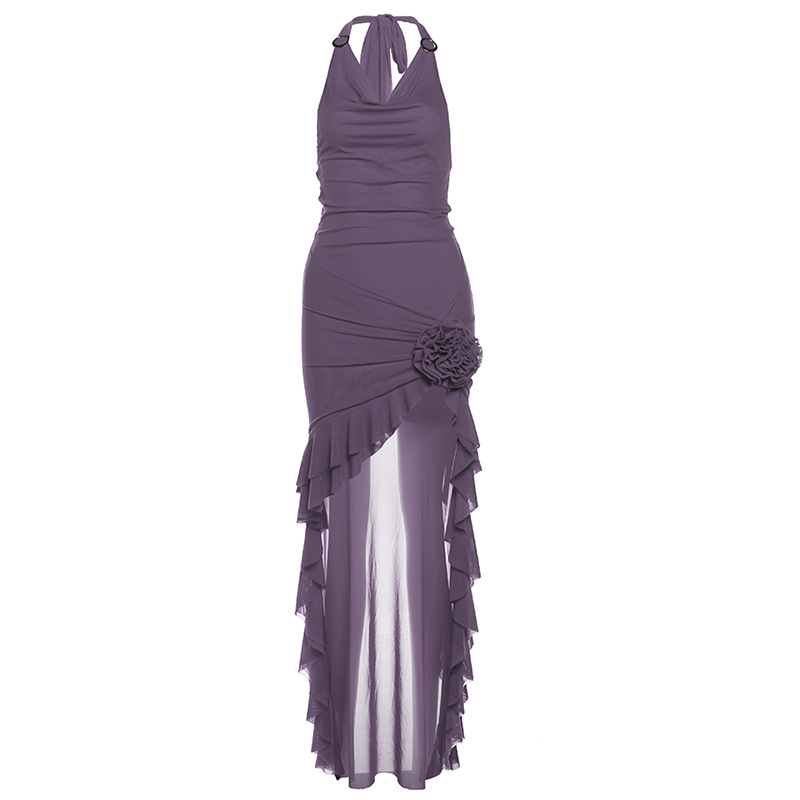 欧美风春夏季新款女装纯色性感挂脖修身束腰连衣裙