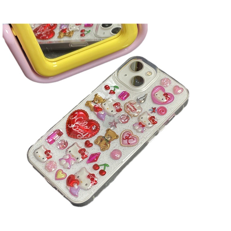 滴胶立体爱心KT猫适用iphone14ProMax手机壳苹果15防摔12全包硅胶