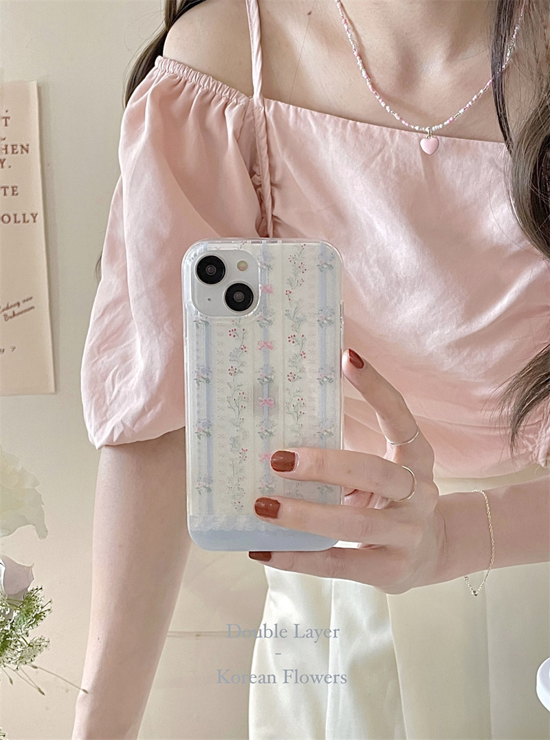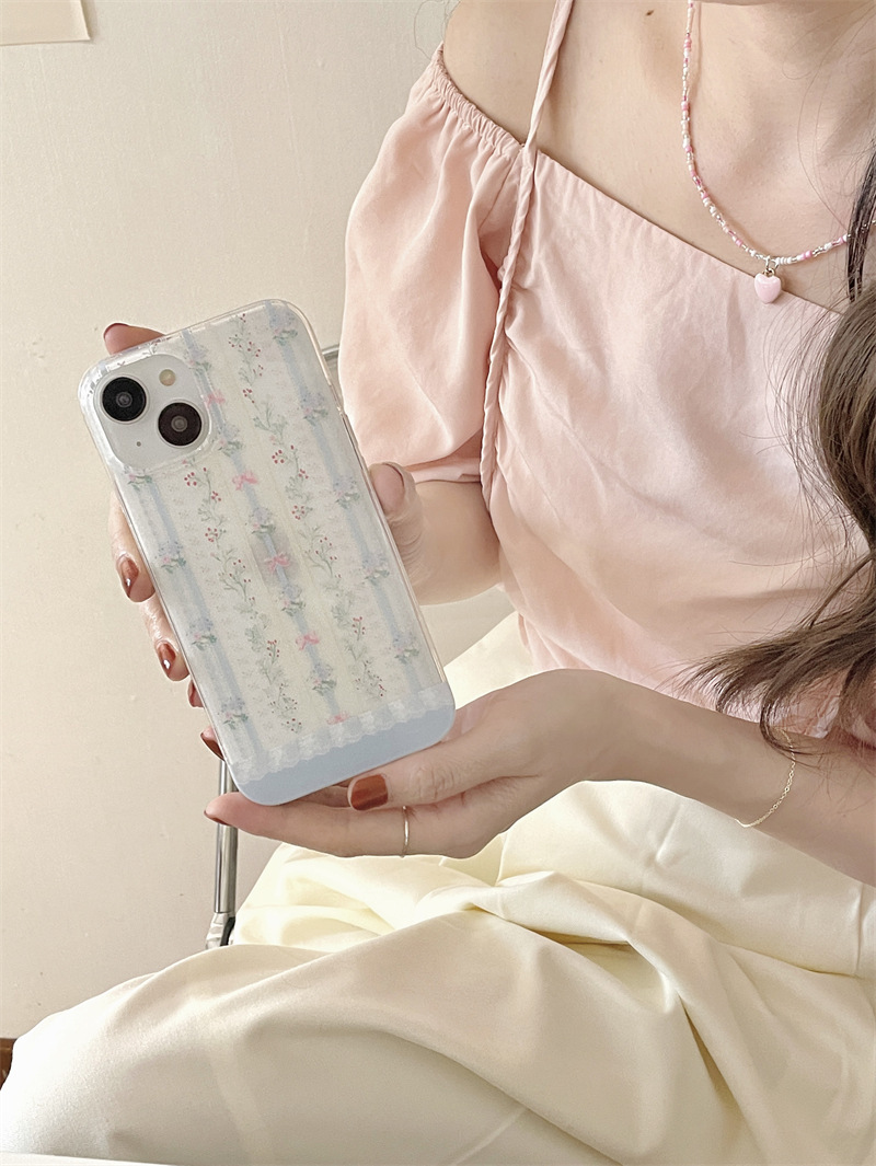 小众条纹蓝色碎花适用iPhone14proMax双层手机壳苹果15全包13新款