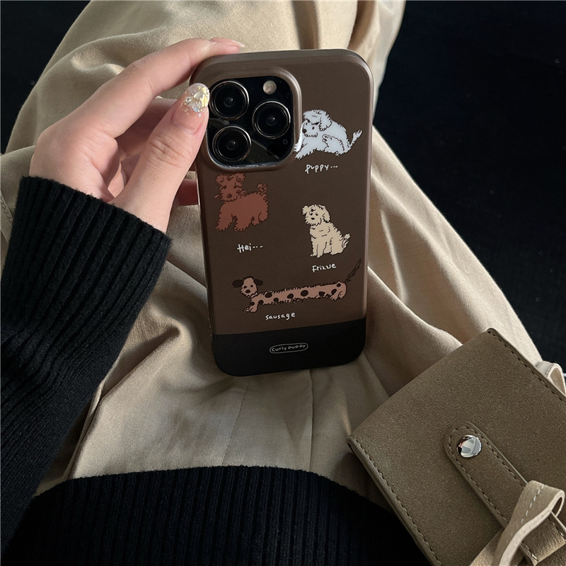 苹果15拼接棕卷毛狗狗适用iphone14ProMax手机壳13全包12小众新款