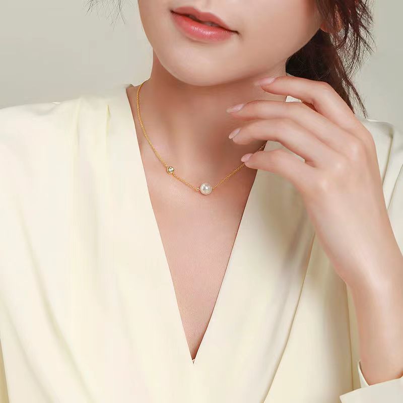 珍珠气质锁骨项链女潮锆石小众简约高级感轻奢纯银首饰