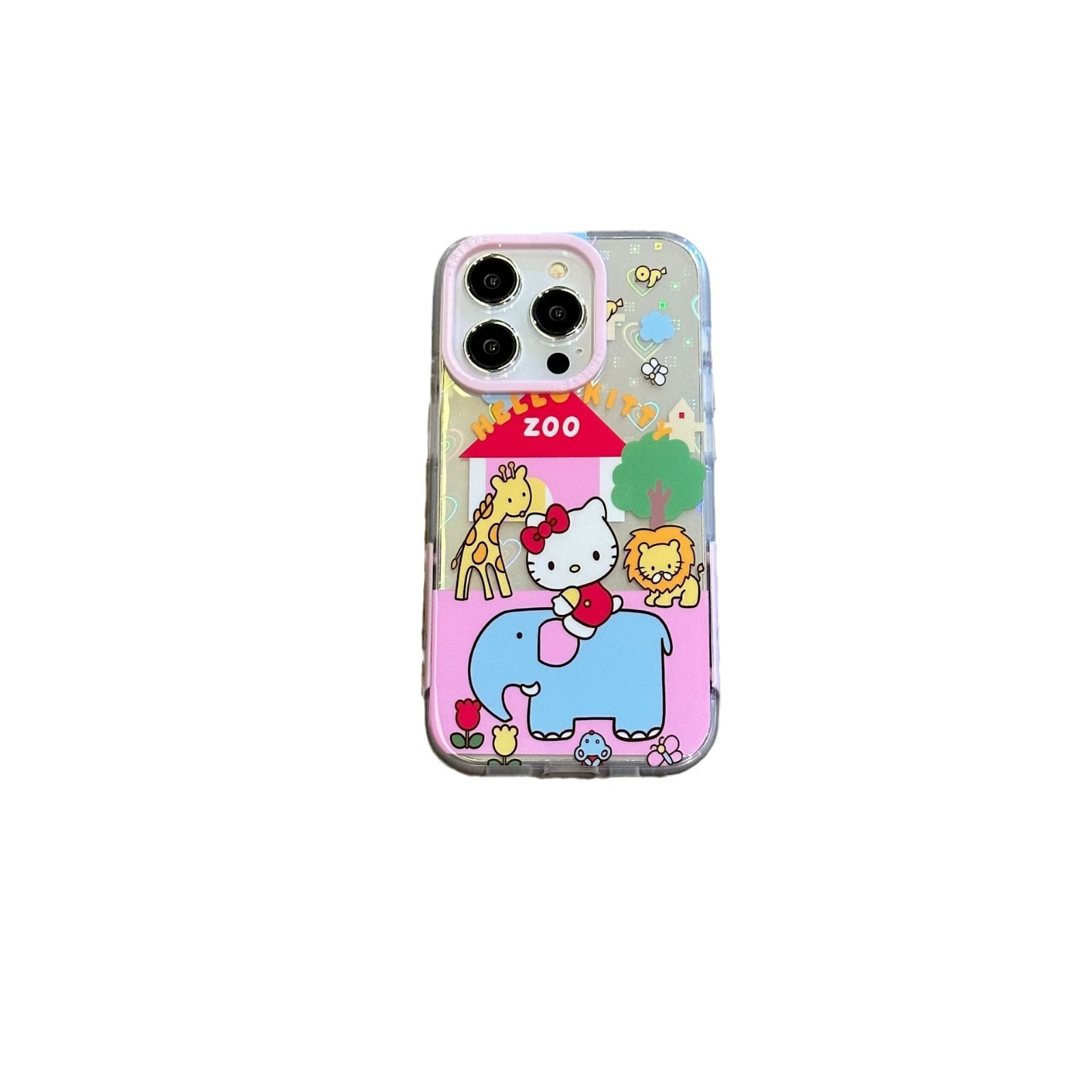 插画房屋小象KT猫适用苹果15ProMax手机壳iphone13全包14双层侧边