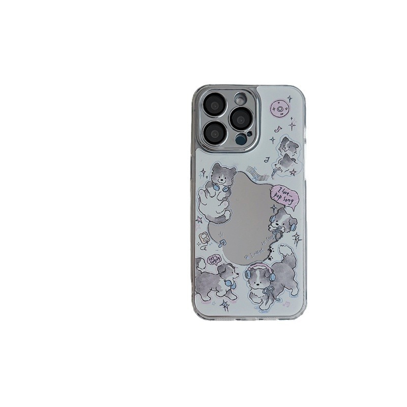 镜面贴纸音乐小狗适用苹果15ProMax手机壳12电镀iphone13全包可爱