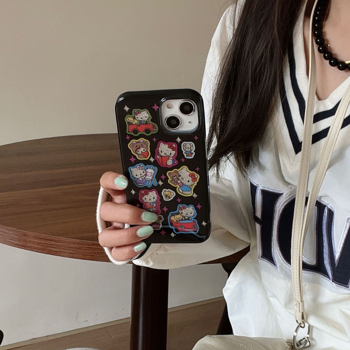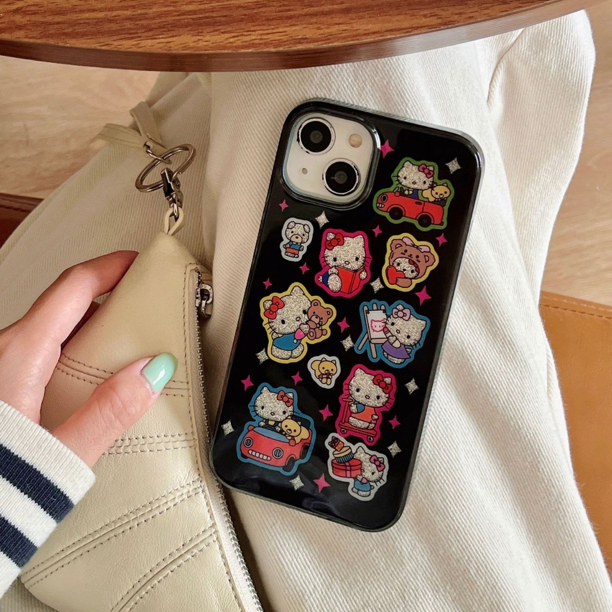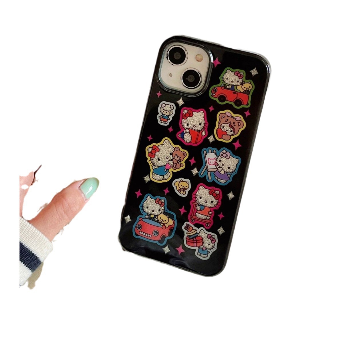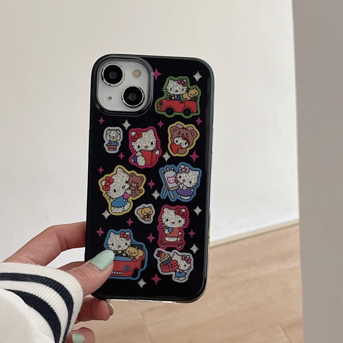韩风贴纸闪粉KT猫适用苹果15ProMax手机壳全包iphone13防摔12双层