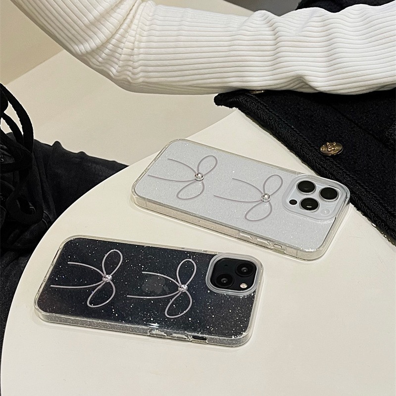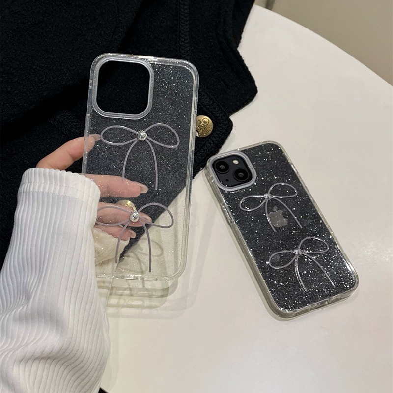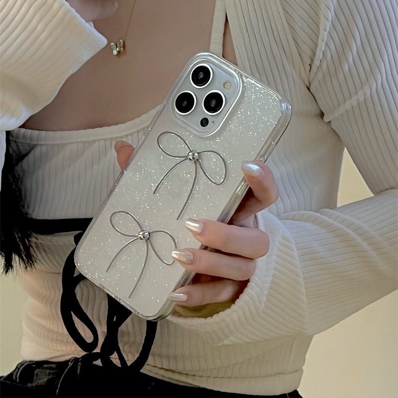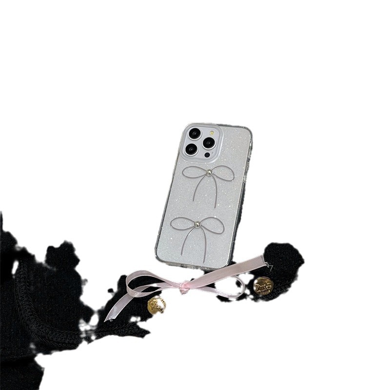 小众立体珍珠蝴蝶结适用苹果15ProMax手机壳12双层13闪粉14全包