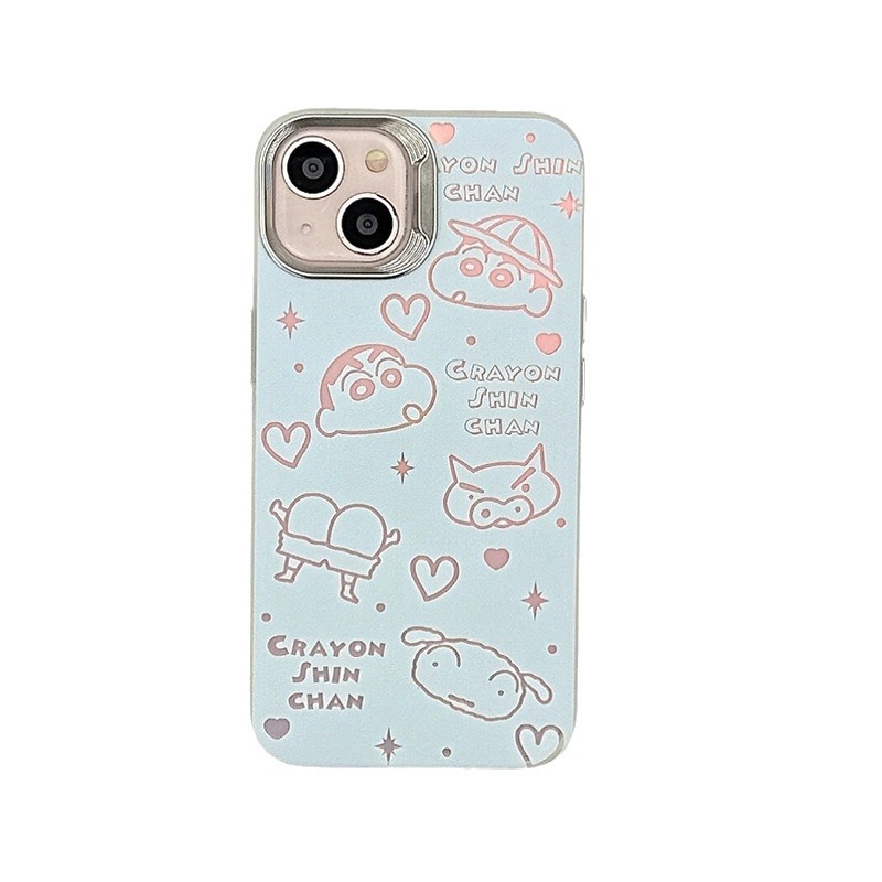 苹果15镭射粉爱心小新PP适用iphone14ProMax手机壳13电镀12全包女