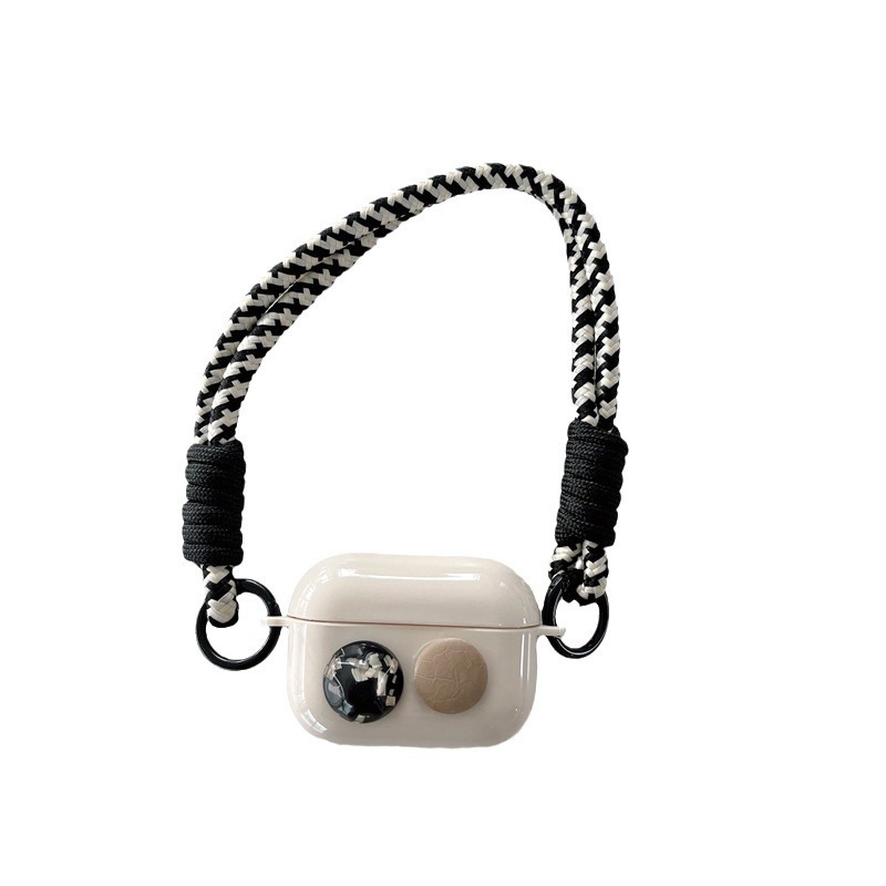 黑色宝石纽扣挂绳适用苹果AirPods保护套Pro2耳机套3代新无线蓝牙