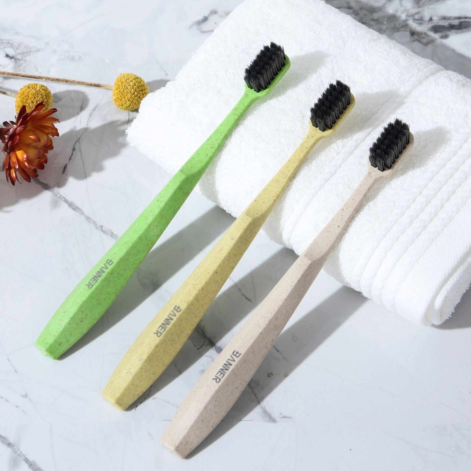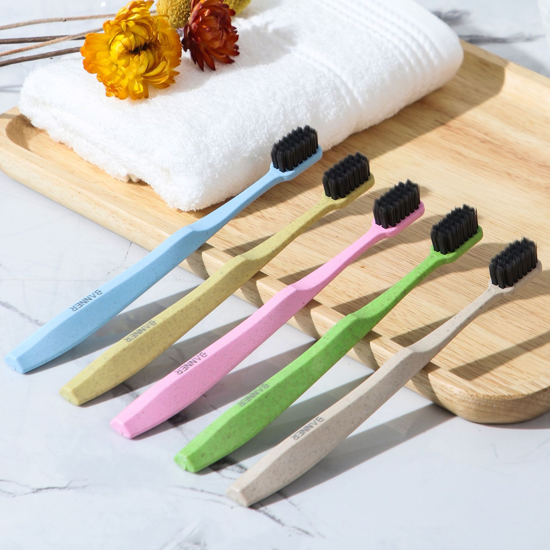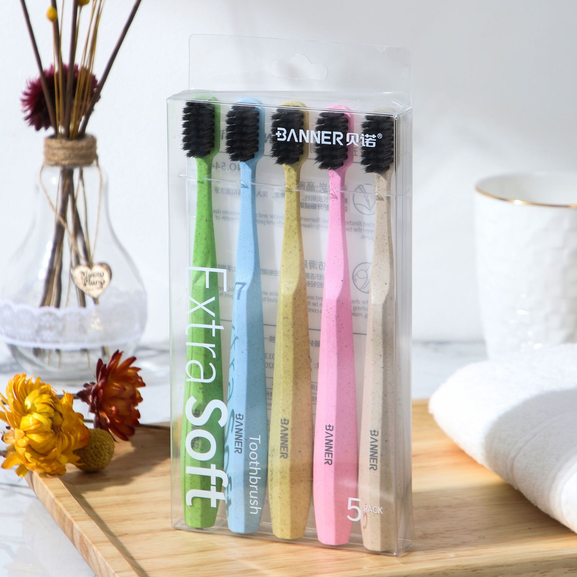 贝诺高级软毛牙刷成人家用备长炭清洁护龈牙刷五支装