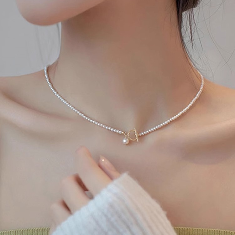 「秀出天鹅颈」小米粒珍珠项链贝珠小众轻奢高级感颈链OT扣锁骨链