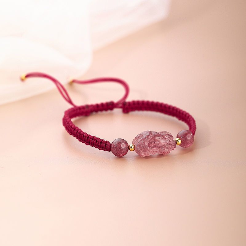 巴度天然水晶红绳手绳草莓晶貔貅手链女本命年手工编织手绳手饰