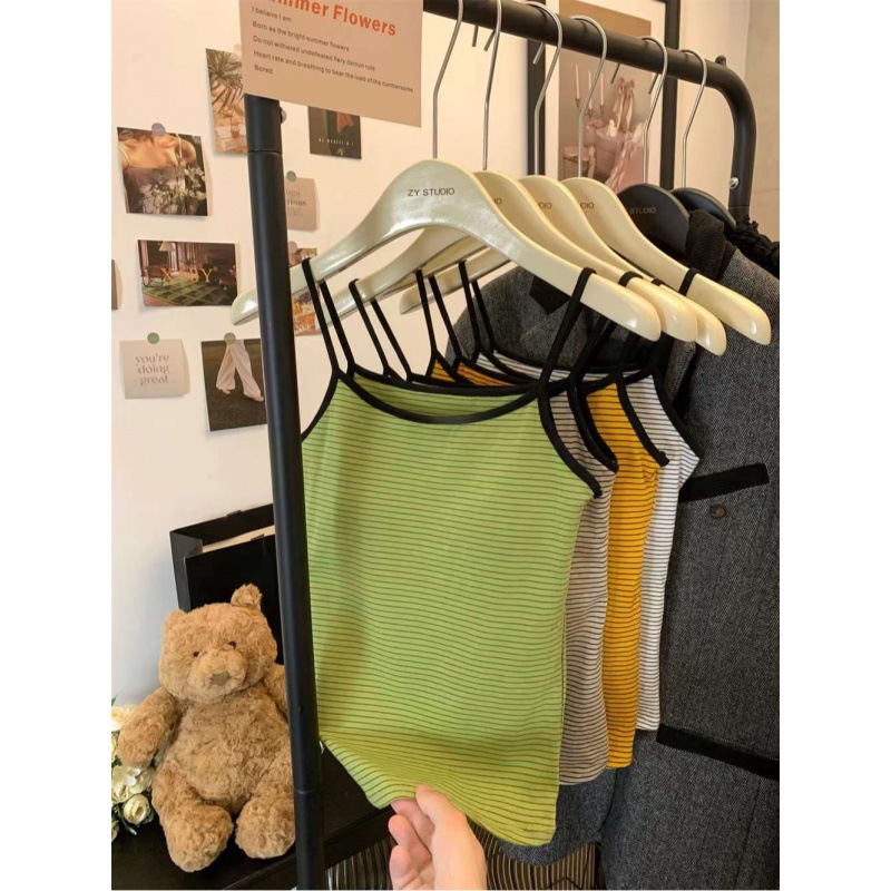 港风复古辣妹撞色条纹吊带背心女夏秋季新款设计感修身露背上衣