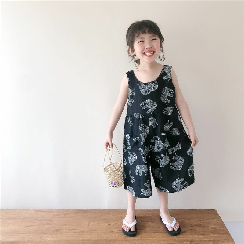 女童夏装背带裤宝宝网红洋气连体衣儿童个性潮韩版卡通九分连身裤