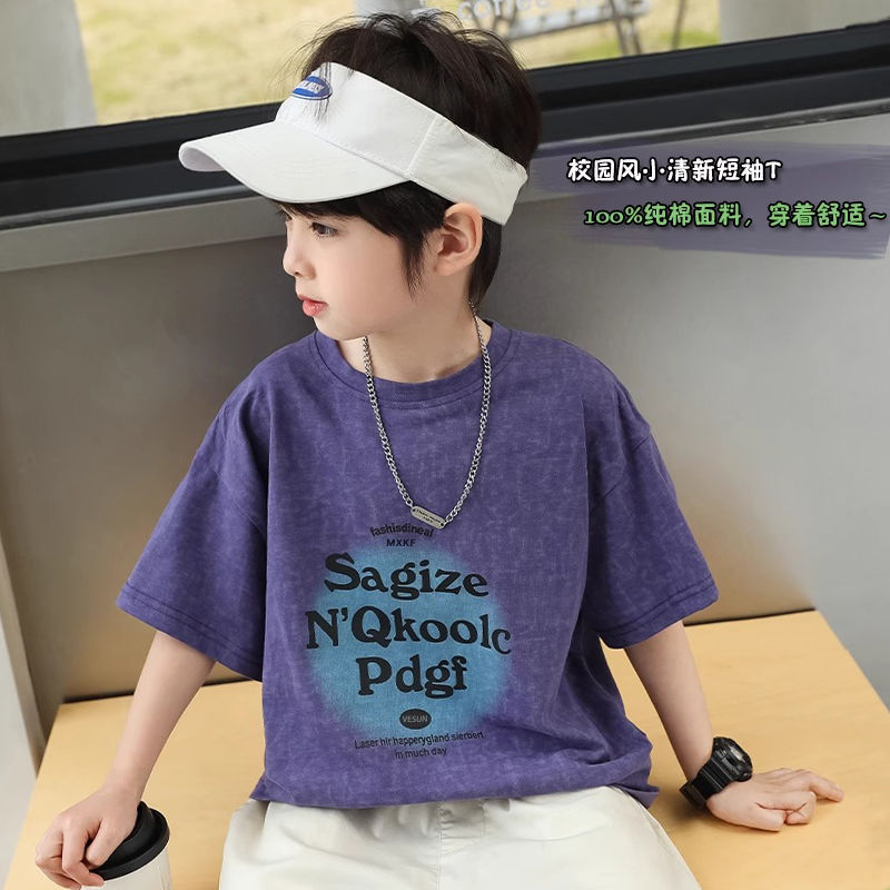 童装男女短袖t恤圆领扎染潮范潮夏季新款儿童宝宝半袖上衣中小童