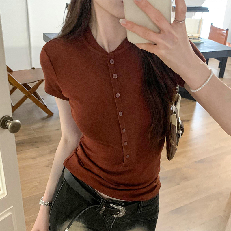 辣妹风气质款短袖正肩T恤女夏秋季新款爆款半开领修身显瘦上衣