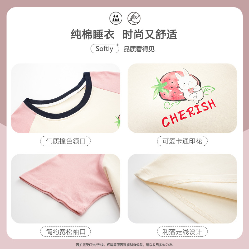 【超柔软】睡衣女士夏款纯棉短袖薄款甜美粉色少女家居服套装夏天